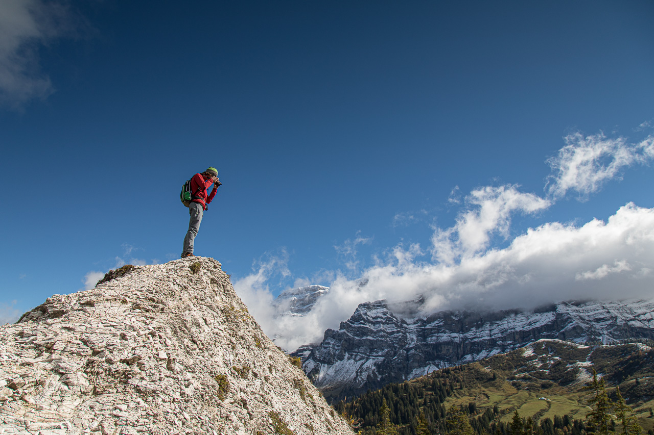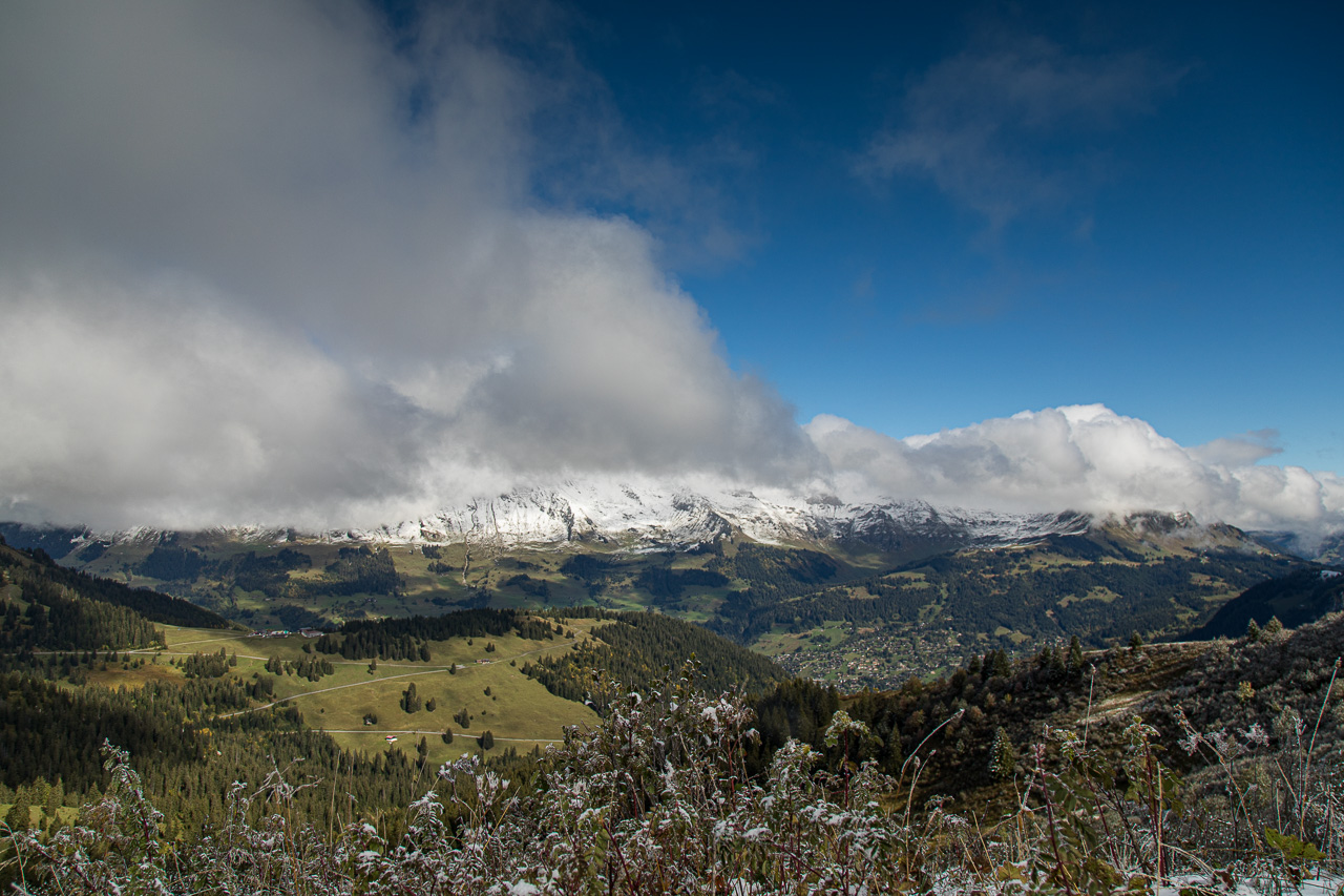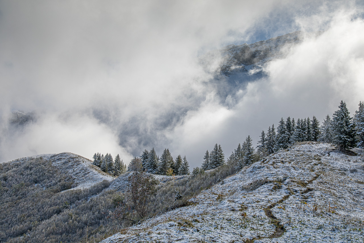 Nach dem Schlechtwettereinbruch tags zuvor waren die Berge weiss gezuckert, auch unser kleiner Gipfel lag im Schnee, die Point d’Arpille am Col de la Croix. Das verlieh dieser kurzen Wanderung eine gewisse Exklusivität und Schönheit. Abgerundet wurde die Sache mit dem Besuch der Gipspyramiden.