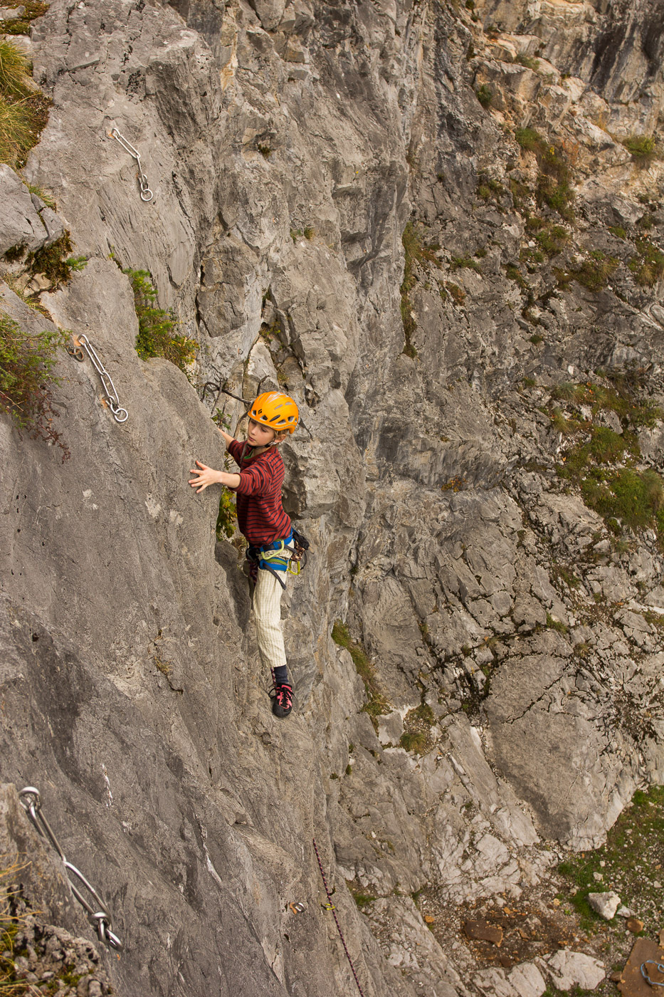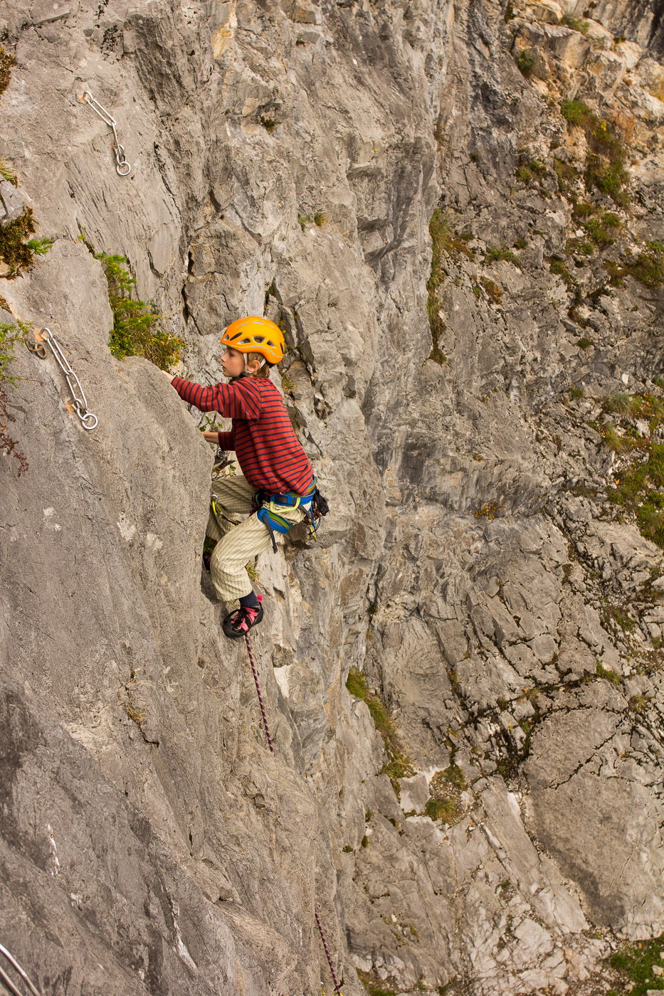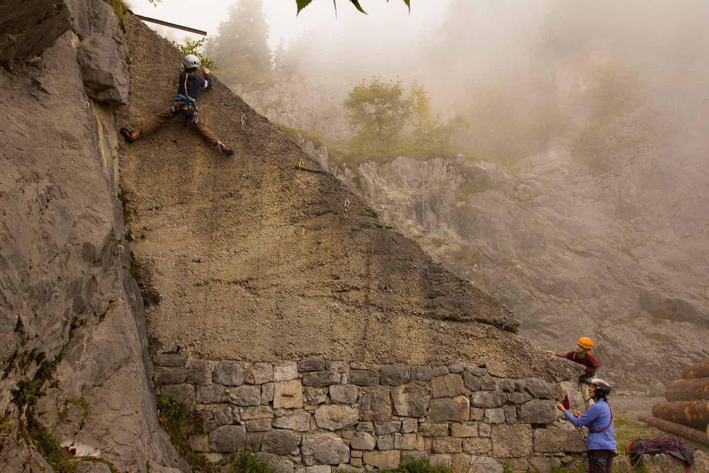 Speziell war eine Quergang-Route an einem Mauerstück, das im Fels endete.