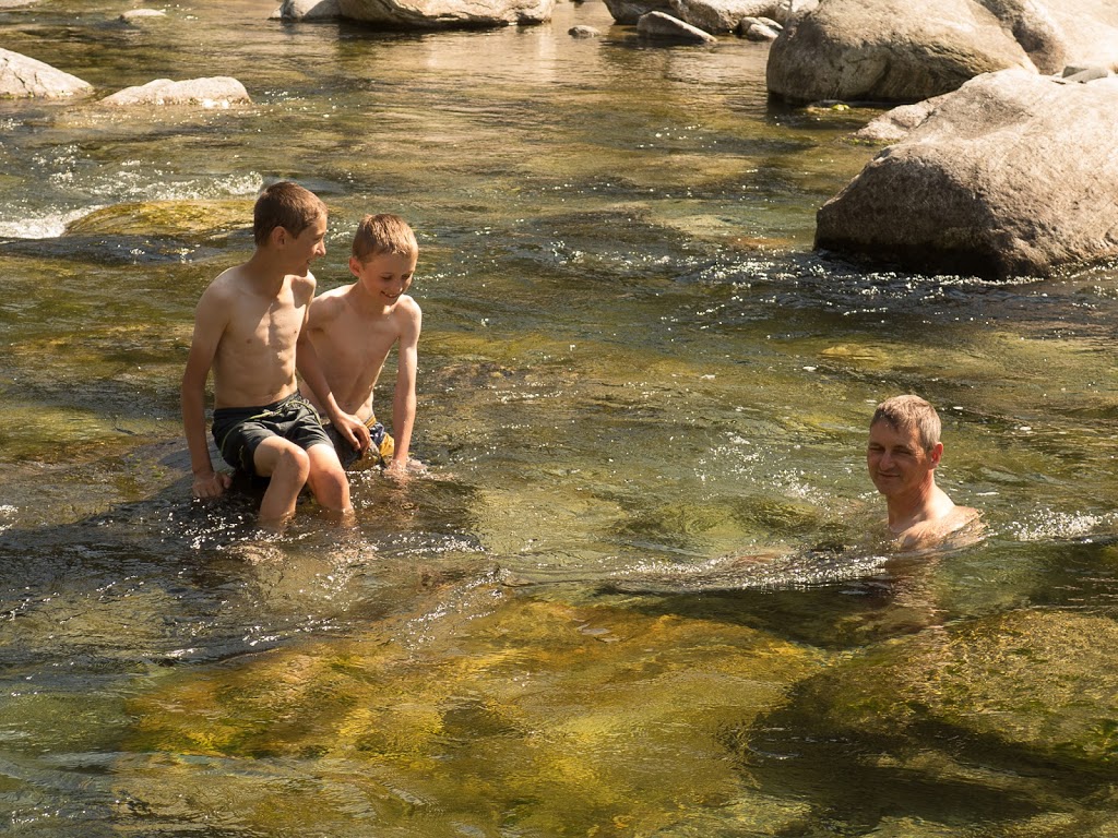 Auf dem Rückweg begeben wir uns an die Maggia, meine Frau und ich schwimmen zur Abkühlung. Herrlich!