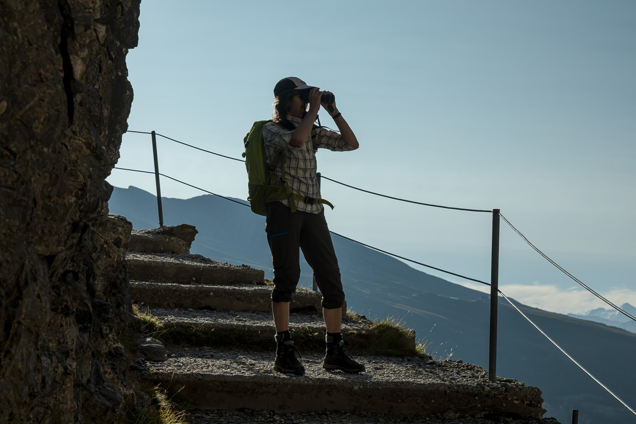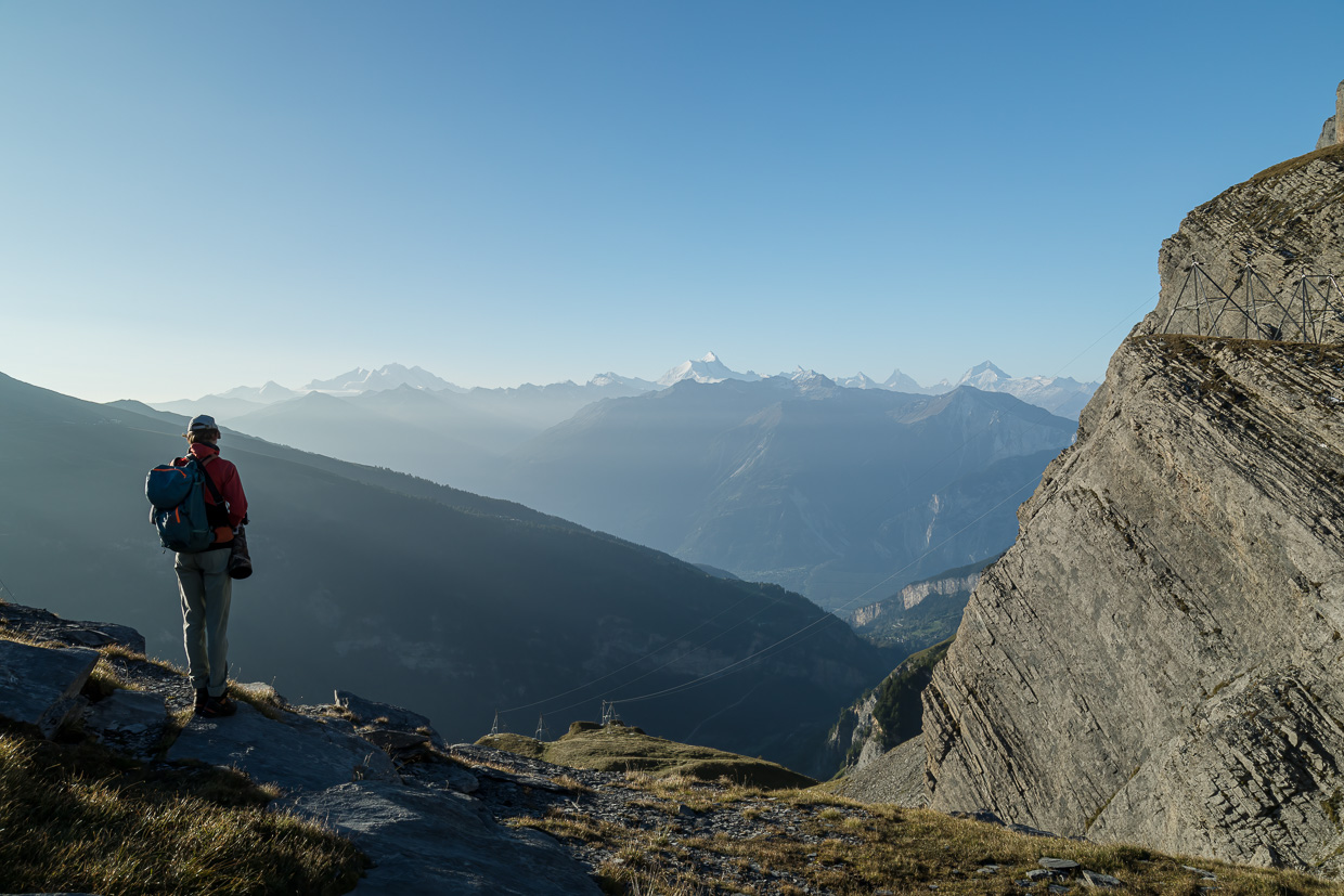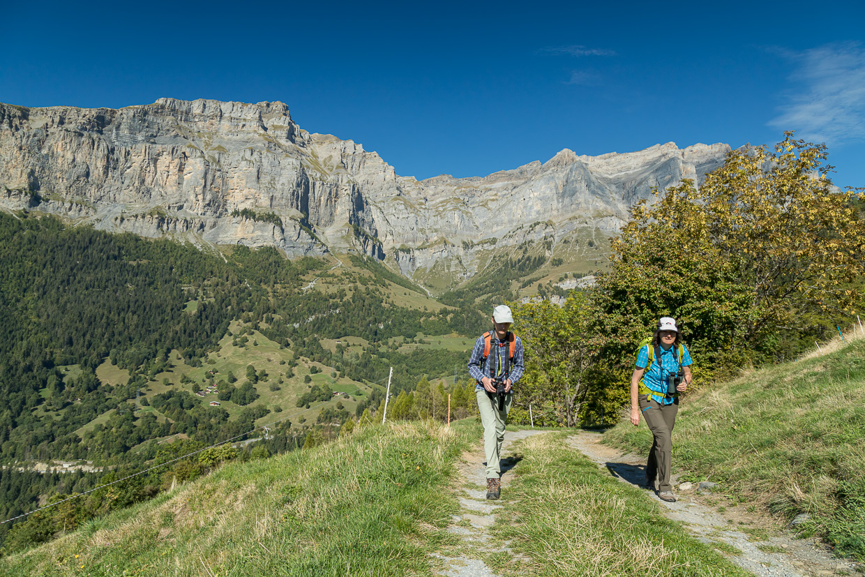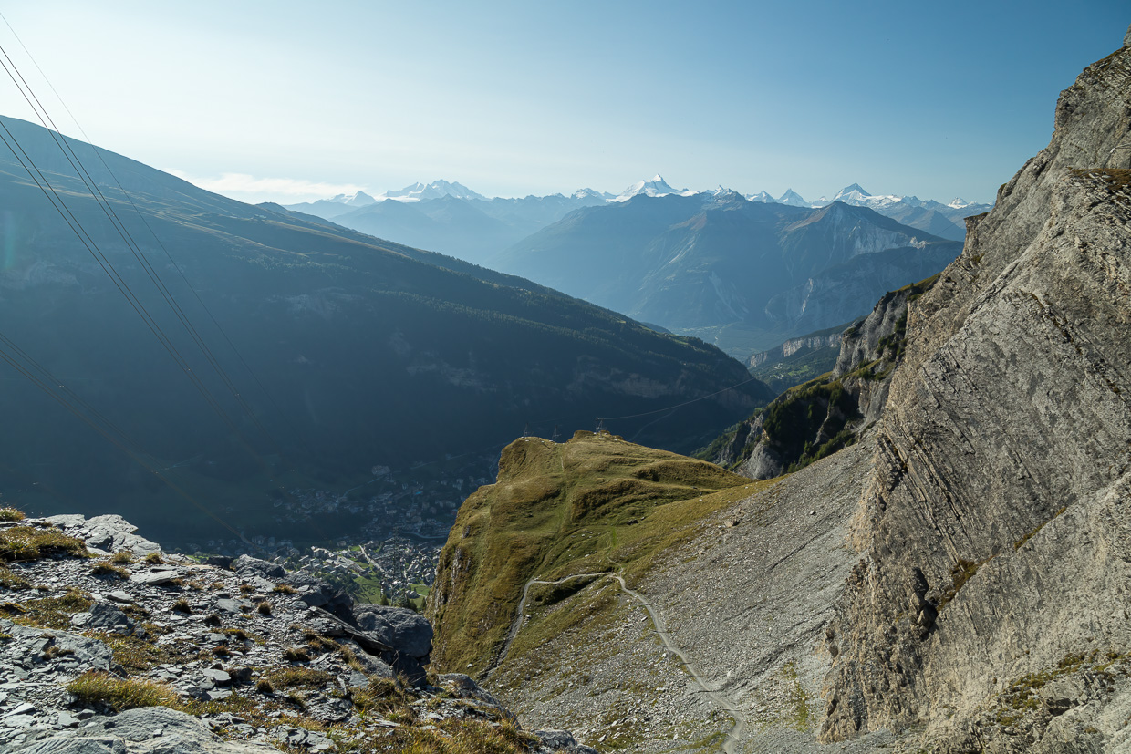 Ich kannte die Albinenleitern vorher nicht und dachte, das sei nur so eine Flurbezeichnung. Umso überraschter war ich dann, dass es sich da tatsächlich um Holzleitern handelte. Auf jeden Fall muss man schwindelfrei sein. Hat man sie hinter sich, ist der Weg nicht mehr spektakulär, aber mit schöner Aussicht. Zudem kann man am Wegrand vor Albinen Gottesanbeterinnen entdecken. Zurück geht es mit dem Postauto.