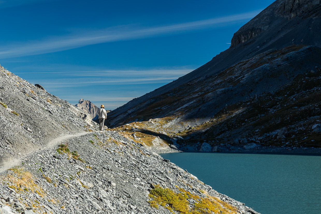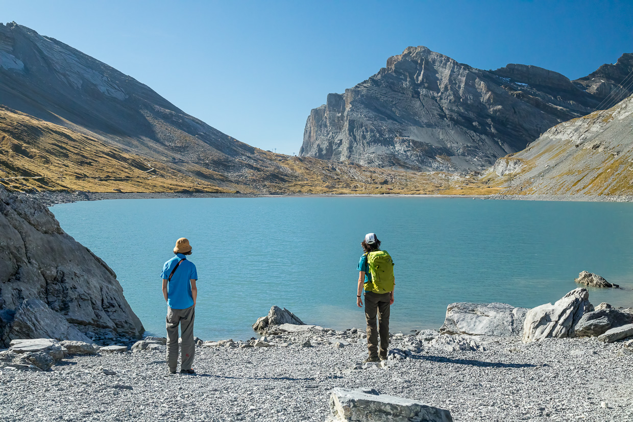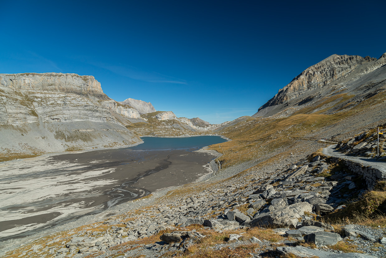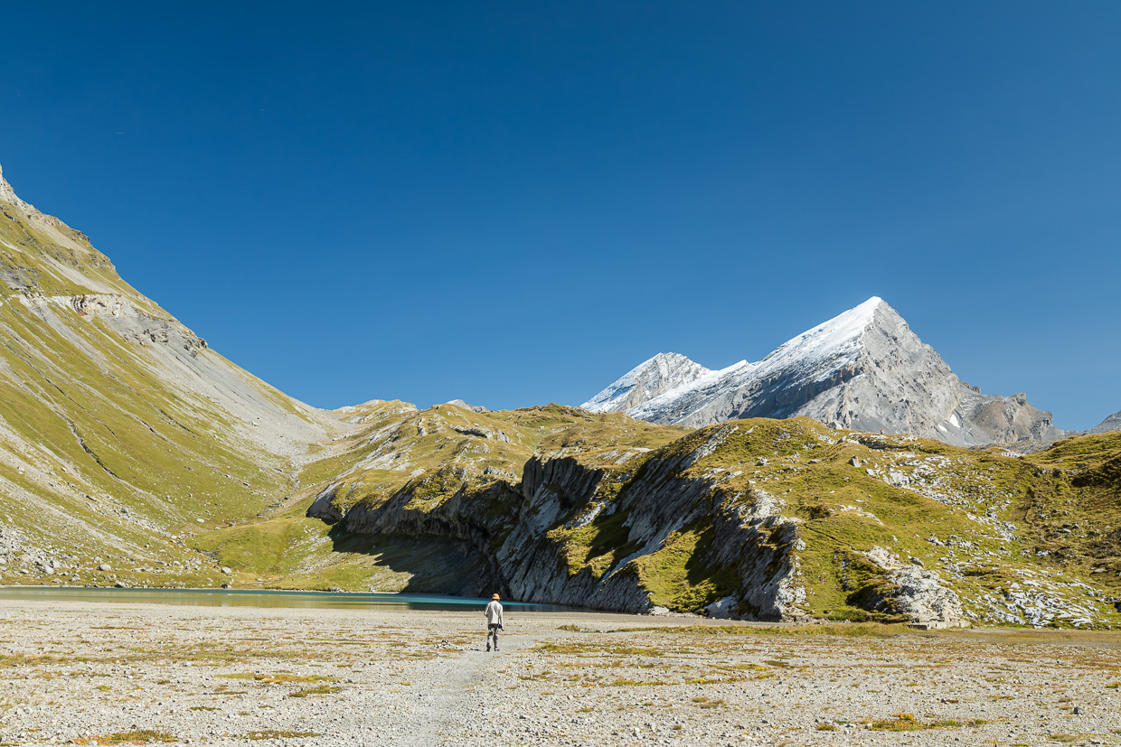Die Runde um den Daubensee ist einfach, aber nichtsdestotrotz eindrücklich. Wieder fuhren wir mit der Seilbahn zur Gemmi hoch. Zuerst folgte ein Abstieg zu Punkt 2262, bevor wir dem See folgten und diesen umrundeten. Es empfiehlt sich, ihn im Uhrzeigersinn zu umrunden, man kommt so erst später ins Wanderergewimmel.