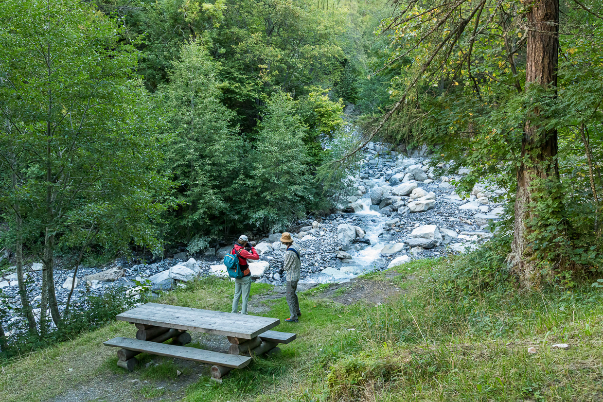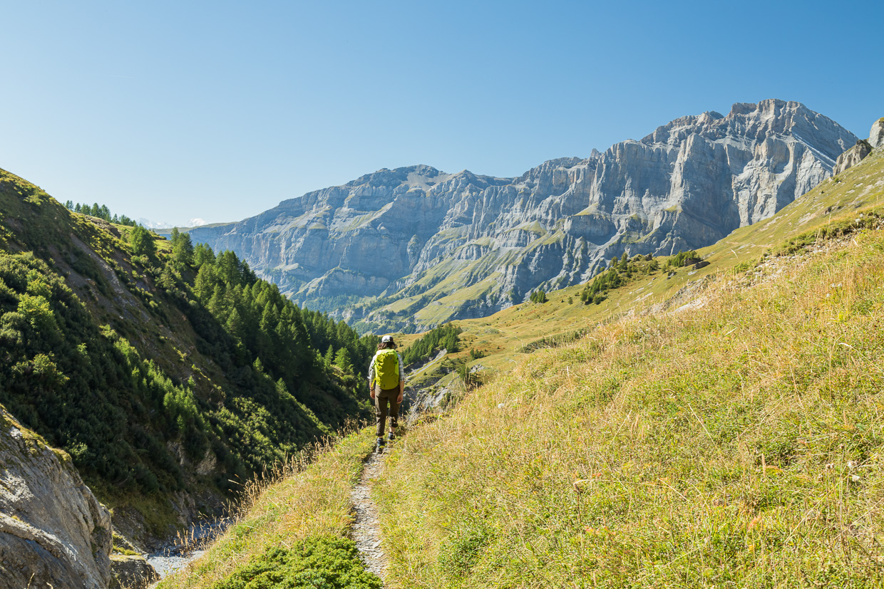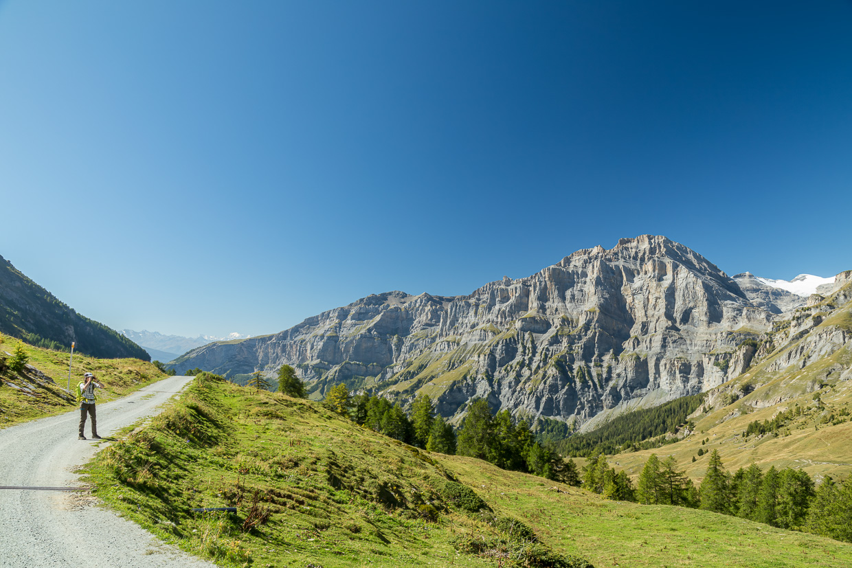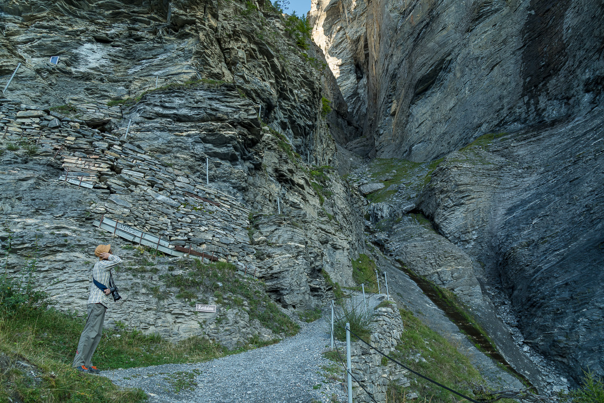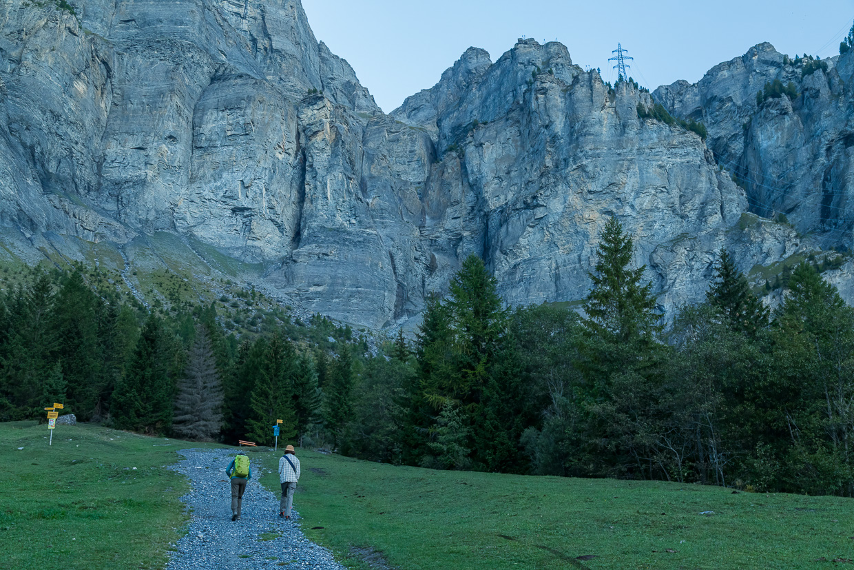 Diese Wanderung startet mitten im Dorf. Zuerst auf einem gemütlichen Wanderweg entlang, betritt man nach ungefähr einem Kilometer die gut ausgebaute Dala-Schlucht. Wer aber nicht schwindelfrei ist und wem schwankende Hängebrücken, gebaut aus Gitterrosten, nicht so sein Ding ist, sollte vielleicht den anderen Weg wählen. Spektakulär ist sie allemal, besonders die schwankende Treppe, die auch bei uns erfahrenen Bergsteigern ein mulmiges Gefühl auslöste. Der Weg nach der Schlucht ist dann wieder ein normaler, bietet aber schöne Aussichten aufs Daubenhorn und die Gemmi. Ebenso imposant sind die Wände der Plattenhörner.