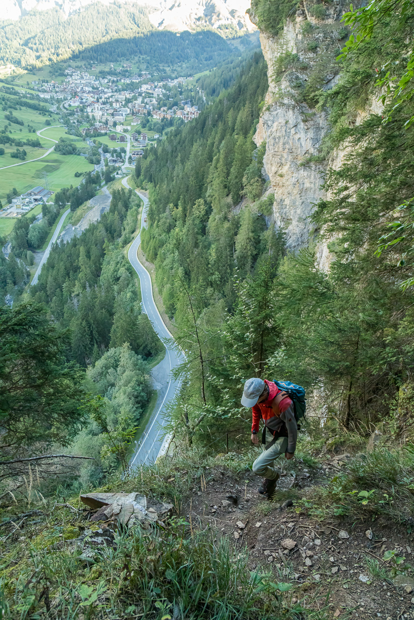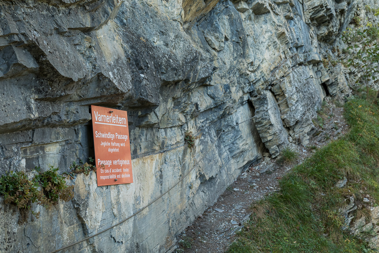 | Alternative: | Wer nicht schwindelfrei ist, kann die Leitern auf der Strasse umgehen (ausgeschilderter Wanderweg). |