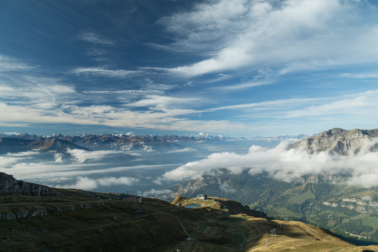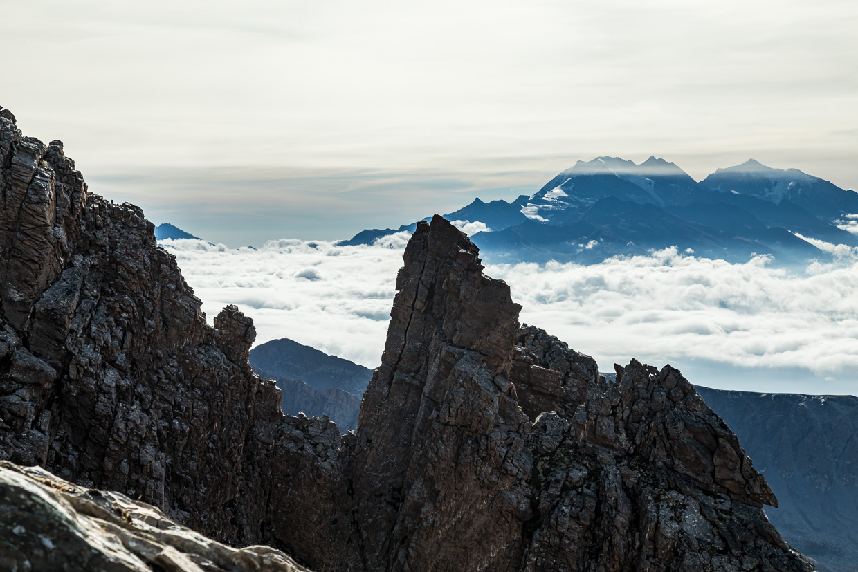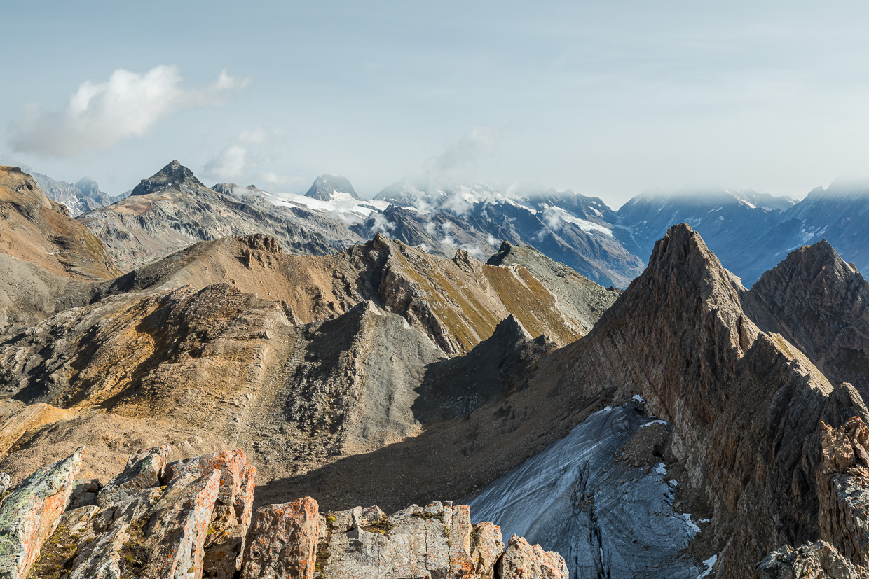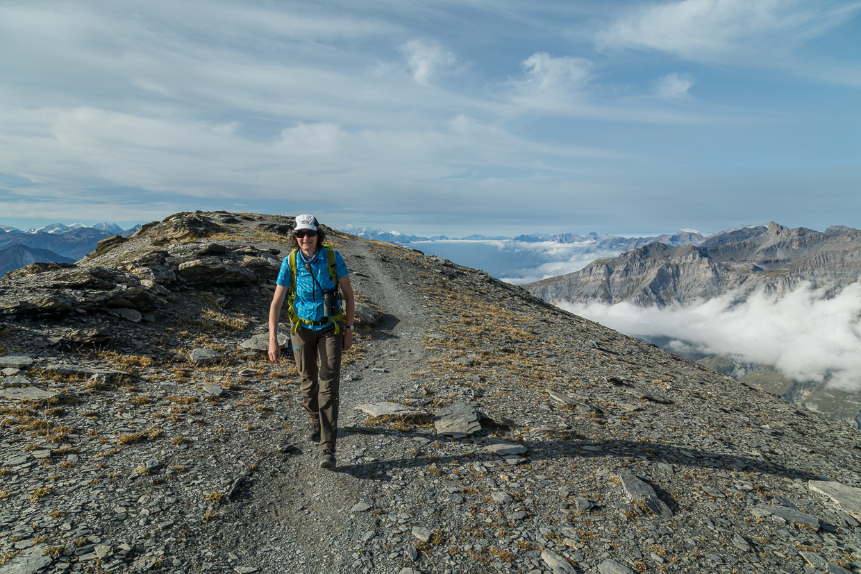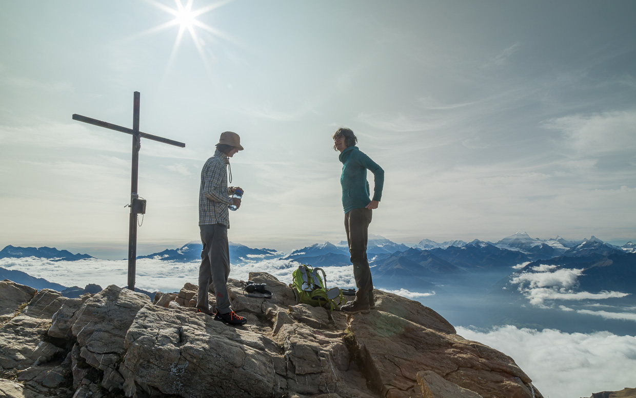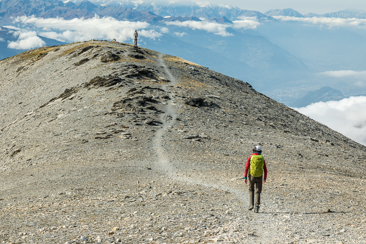 Nur drei Meter fehlen bei diesem Gipfel zum Dreitausender. Natürlich ist er trotzdem eine Begehung wert, zumal seine Besteigung recht einfach ist. Mit der Seilbahn zur Rinderhütte spart man sich schon mal 1000 Höhenmeter Aufstieg. Von dort folgt man dem Wegweiser zum Torrenthorn. Der Weg ist nie ausgesetzt oder andersweitig schwierig. Wir erwischten einen wunderbaren Tag und genossen eine grossartige Aussicht auf die Walliser Viertausender und den Mont Blanc in Frankreich.