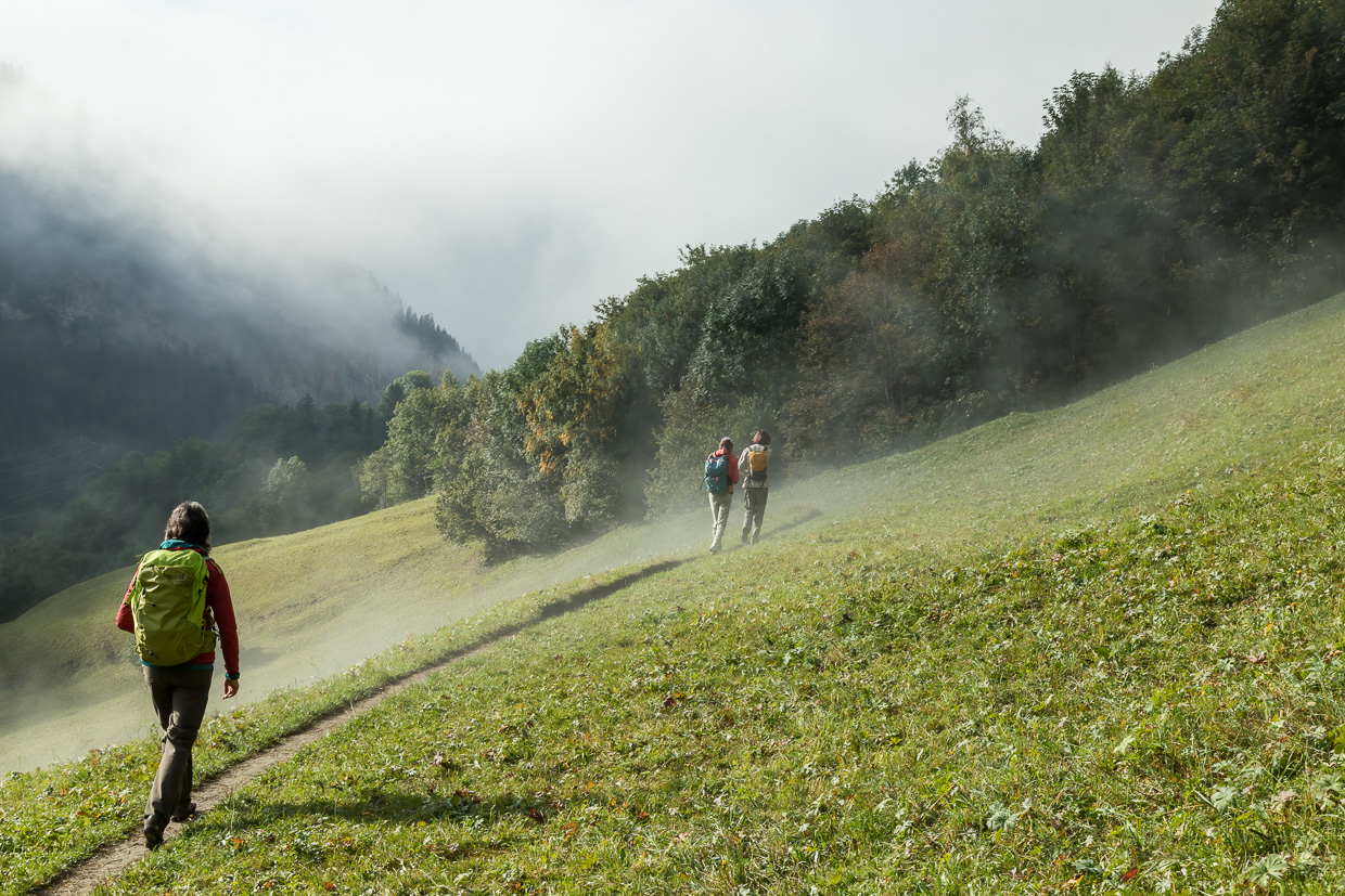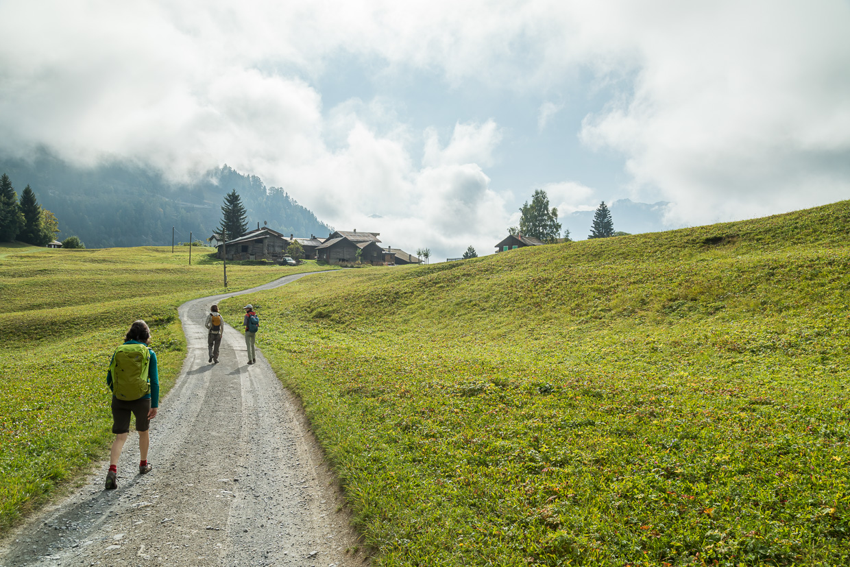 Vor der Flüekappelle überquerten wir eine Hängebrücke, die eine tiefe Schlucht überspannt. Der Rückweg auf der anderen Seite ist zum Teil herausfordernd wegen der Erosion. Danach ist der Weg wieder einfach zu begehen. Auf der Clabinualp genossen wir nochmals die Aussicht, bevor wir wieder nach Leukerbad abstiegen.