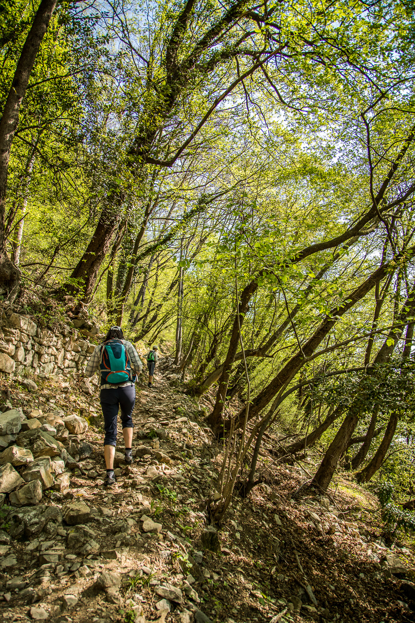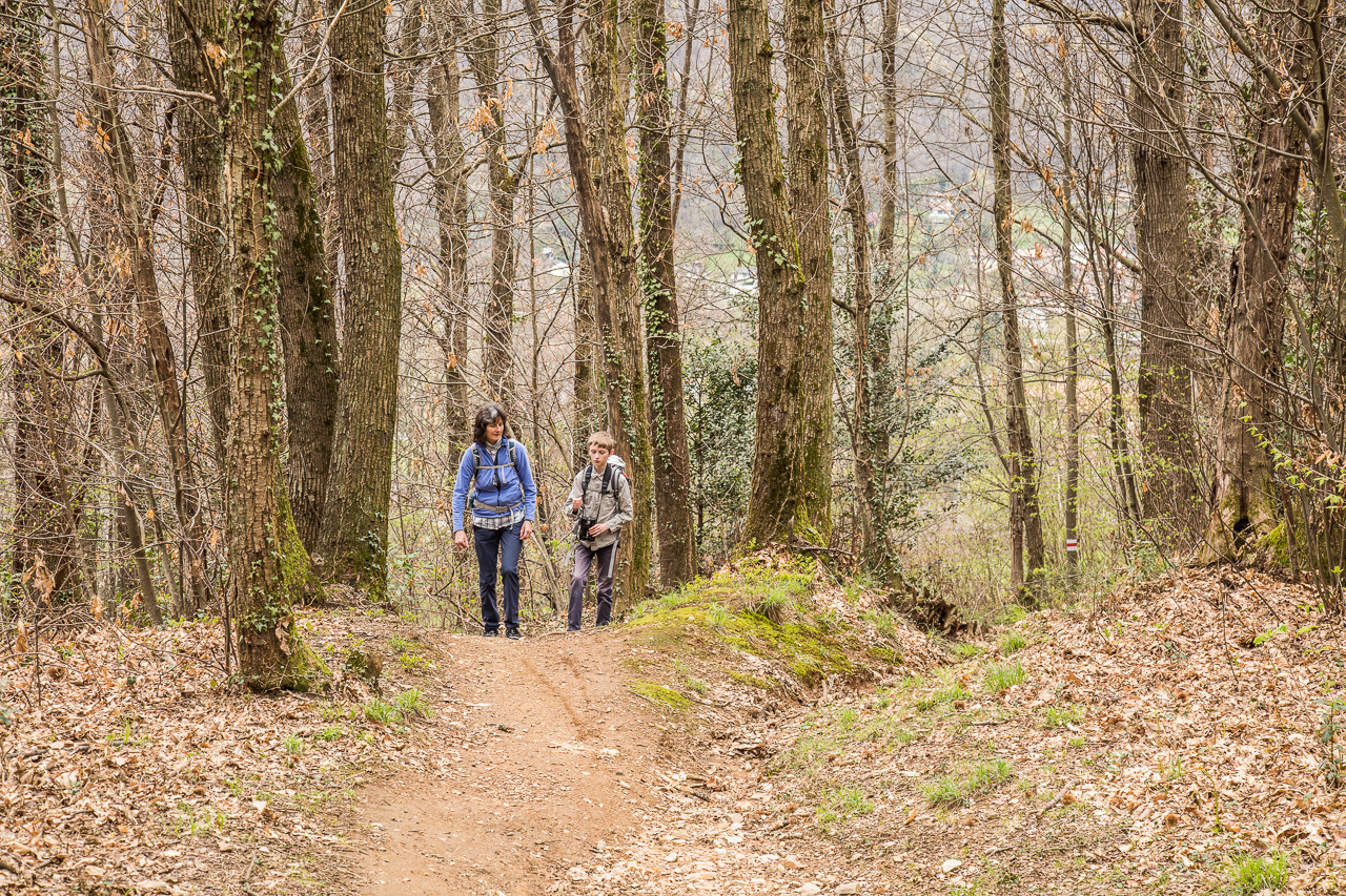 Wir entschieden uns für den Fussmarsch, dessen Ausgangspunkt, Cantine di Caprino, aber auch nur mit dem Schiff erreichbar ist. Wir genossen die Schifffahrt via Gandria und dem Zollmuseum nach Caprino. Als einzige entstiegen wir dort dem Schiff und machten uns auf den Weg. Im Schatten des Waldes genossen wir die Wanderung und das stete Auf und Ab. Mehr als 80 Höhenmeter kamen aber nicht zusammen, auch die Distanz ist eher ein Spaziergang mit fünf Kilometern. Das liess uns Zeit, zu schauen und in den Wald hinein zu horchen. Unterwegs kamen wir immer wieder an einem Grotto vorbei, wo wir hätten einkehren können, wenn es schon offen gehabt hätte um diese Jahreszeit.