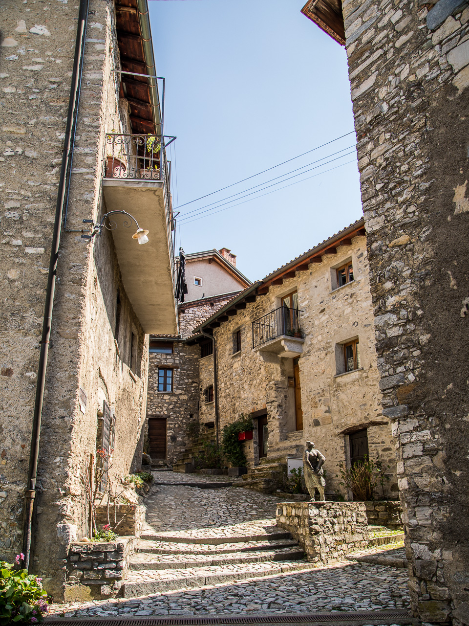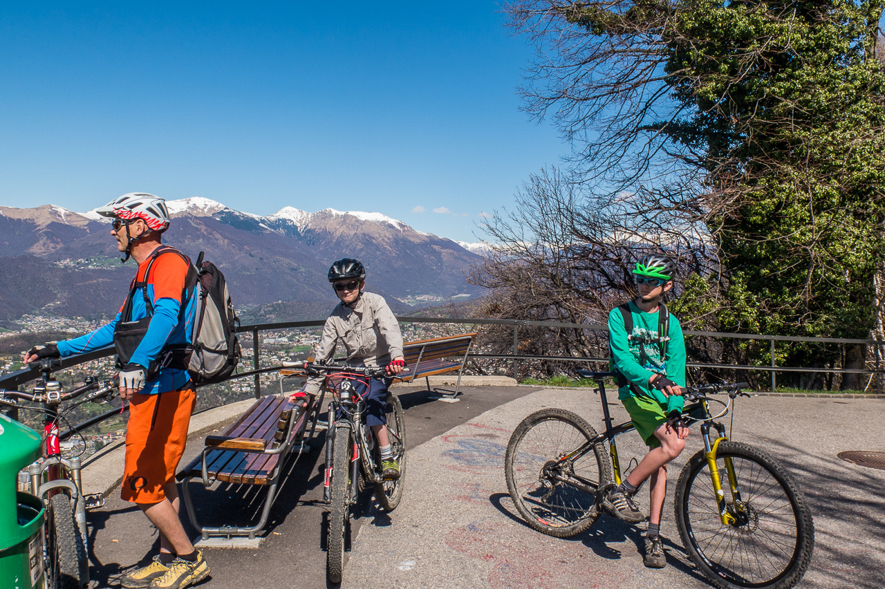 In Origlio mussten wir einen neuen Weg finden um den See, denn die offizielle Route war nun mit einem Bikefahrverbot versehen. Nun halt. Ein kurzer Aufstieg nach San Giorgio, dann folgte wieder ein Singletrail, zumindest für drei von uns. Wir warteten auf die Frau, sie kam und kam nicht. Ich ging den Weg zurück, traf sie aber nirgends an, auch nicht im Gebüsch liegend. Dafür konnten die Jungs den Trail ein zweites Mal befahren. Wir fuhren weiter, irgendwann fanden wir sie dann wieder unversehrt. Wir erreichten die Hauptstrasse bei Taverne, der wir ein Stück folgen mussten. Es war das mit Abstand schlimmste Stück der Strecke: Nonstop Lastwagen- und Autoverkehr, kein Radstreifen.