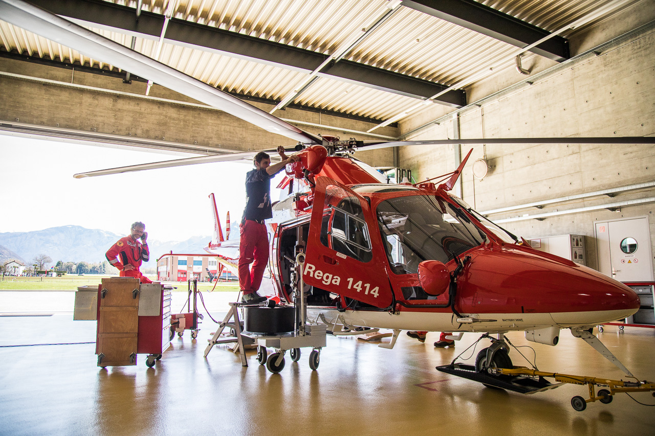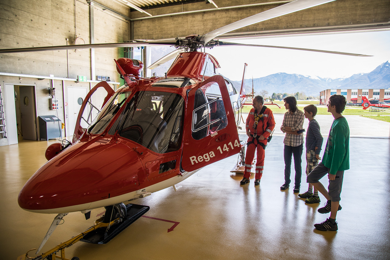Auf der Anreise legten wir einen Stopp ein auf der Rega-Basis in Locarno, denn von dort kam der Helikopter, der Silvan rettete und ins Spital Luzern flog. Der Helikopter kam gerade von einem Einsatz zurück, der Arzt und der Pilot hatten Zeit und erklärten uns allerhand. Wir erklärten ihnen den Grund unseres Besuches und überreichten ihnen für den Piloten (er hatte gerade keinen Dienst) ein Präsent in Form selbstgebackener Chrömli.