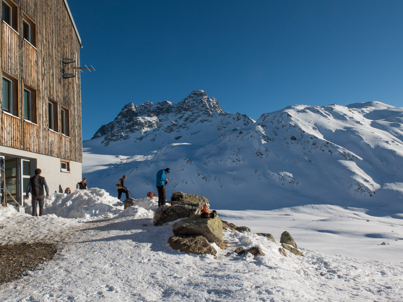 Die Keschhütte ist sowohl im Sommer wie im Winter Ausgangspunkt für verschiedene Wanderungen, Hochtouren, Biketouren und Skitouren. Sie wurde im Jahr 2000 neu gebaut nach modernsten technischen und ökologischen Erkenntnissen. Bewartet wird sie von Ursina und Reto Barblan. Bei ihnen ist man bestens aufgehoben, wir haben drei Tage ausgezeichnet gegessen. Zu beachten: Die Hütte liegt auf 2630 Meter über Meer, empfindliche Personen könnten da Mühe haben.