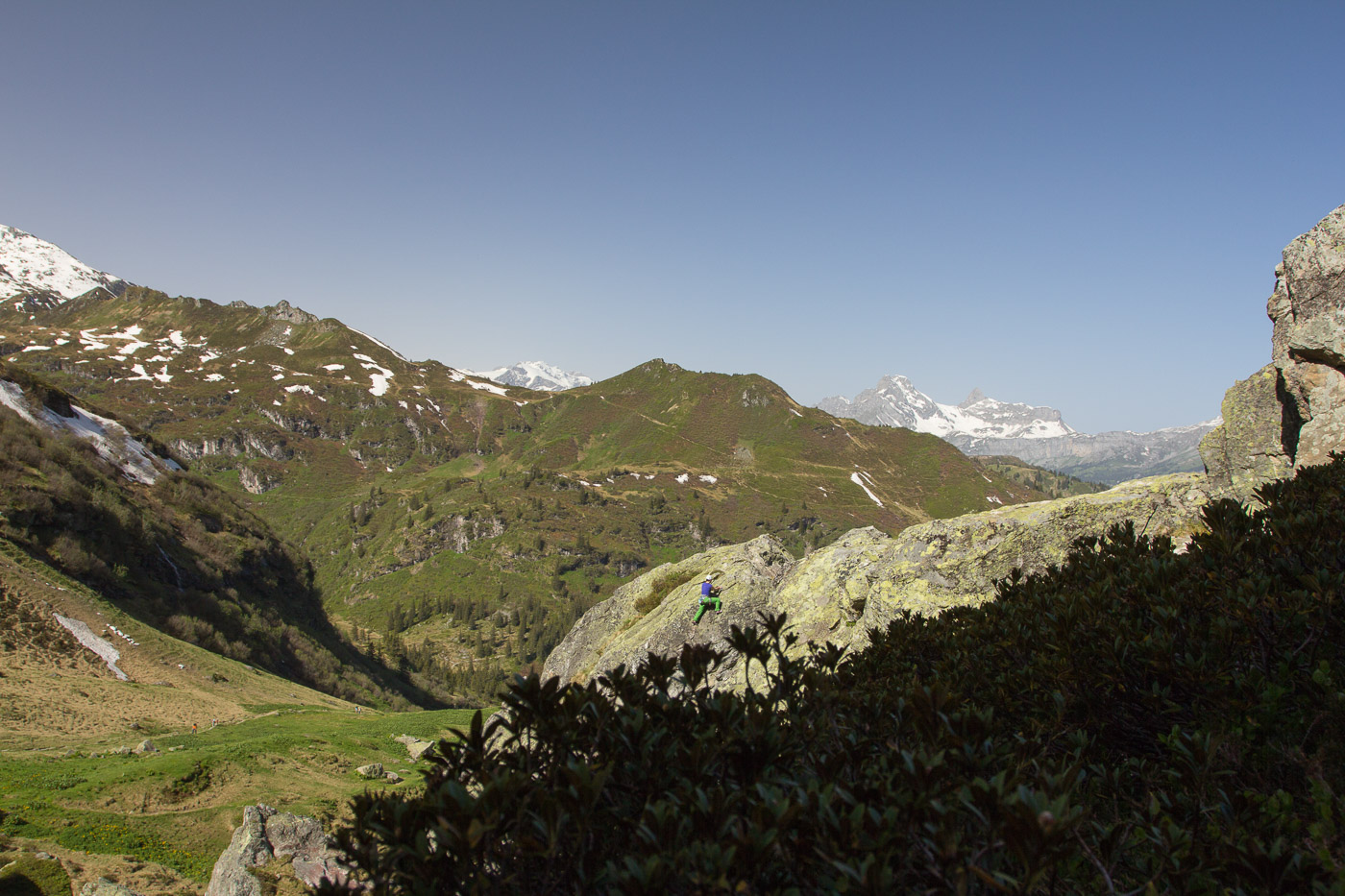 Über Pfingsten schlossen wir uns dem SAC Homberg an und verbrachten drei tolle und heisse Tage im Zigerschlitz, auch bekannt als Glarnerland. Bei Widerstein auf der Mettmenalp sind mehrere riesige Felsblöcke verteilt, die sich hervorragend eignen zum Klettern, das perfekte Familienklettergebiet. So war auch der Plan klar für die nächsten Tage.