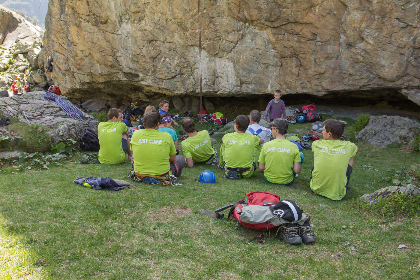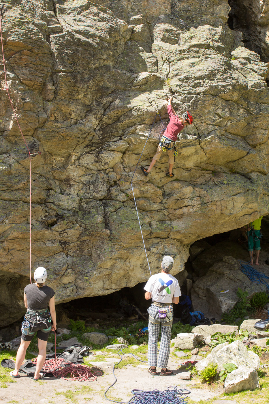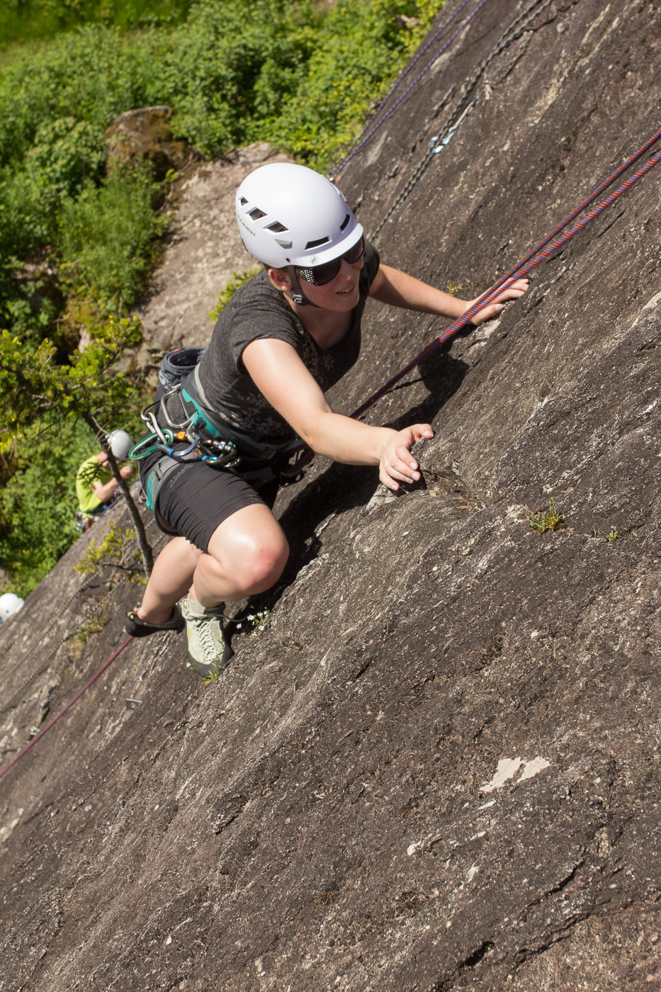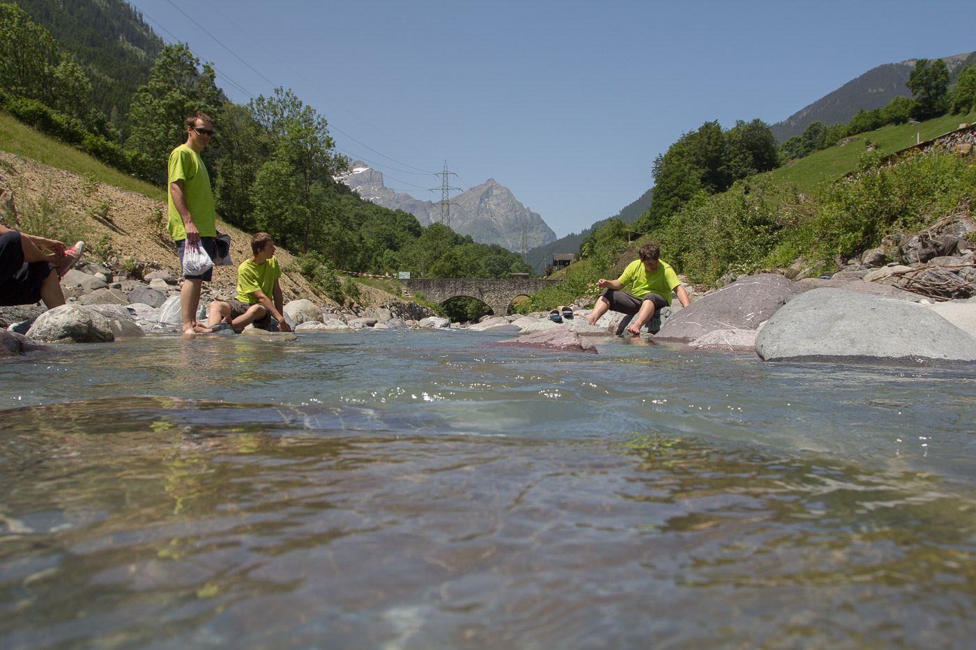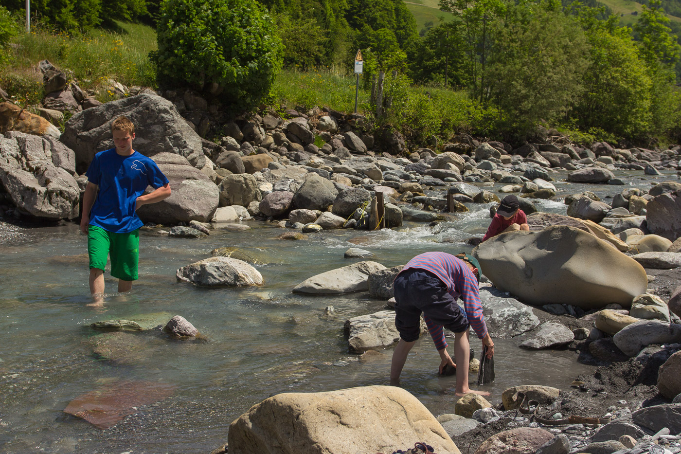 Am letzten Tag fahren wir gleich am Morgen ins Tal ab und dann wieder hoch ins Sernftal nach Engi. Dort liegt ein riesiger Felsen, der von einer Lawine quasi freigelegt wurde. Allerdings ist es schon am Morgen früh heiss. Trotzdem wird noch munter geklettert bis am Mittag, danach kühlen wir uns am Fluss etwas ab bevor wir endgültig heim zu fahren.