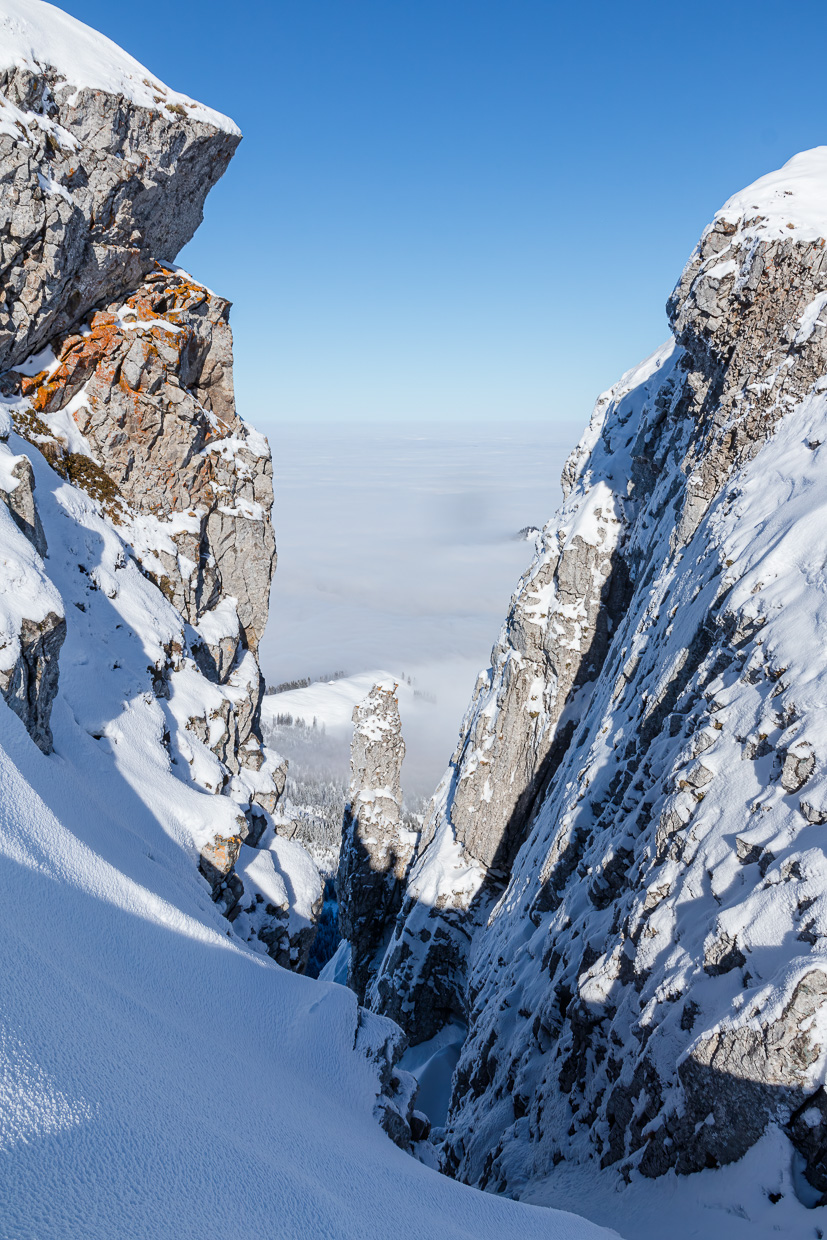 Modetour Schrattenfluh. Das tönt schon so abschreckend. Wir wagten es trotzdem. Und ja, es hatte Leute. Aber überlaufen war die Tour nicht. Und wenn man dann am Rand zum Mittelland steht und über ein riesiges Nebelmeer blickt, aus dem sich erst wieder der Jura und der Feldberg im Schwarzwald erheben, weiss man: Alles richtig gemacht.
