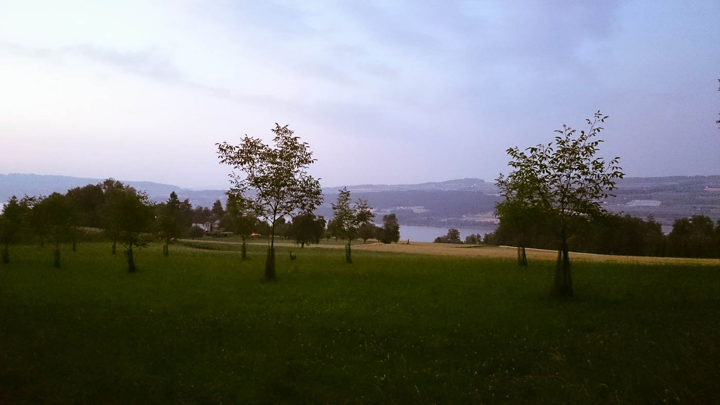 Auch der Blick auf den Hallwilersee durfte bei so einem Spaziergang nicht fehlen. Prompt überraschten wir zwei Rehe. Eines rannte davon und bellte (ja, bellte, es tönte wie ein Hund), das andere blieb stehen und beäugte uns die längste Zeit, bis es sich auch in die Büsche schlug. Wir kehrten um, es war schon ziemlich dunkel geworden, trotzdem erkannte man immer noch einiges. Die Fledermäuse waren inzwischen auch erwacht, flatterten über unseren Köpfen. Faszinierend, wie sie mit ihrem Echolot in traumwandlerischer Sicherheit ihre Beute jagen und Hindernissen ausweichen, als Augentier kann man sich das gar nicht richtig vorstellen.