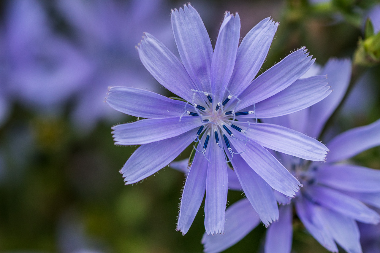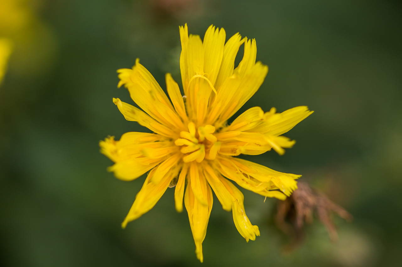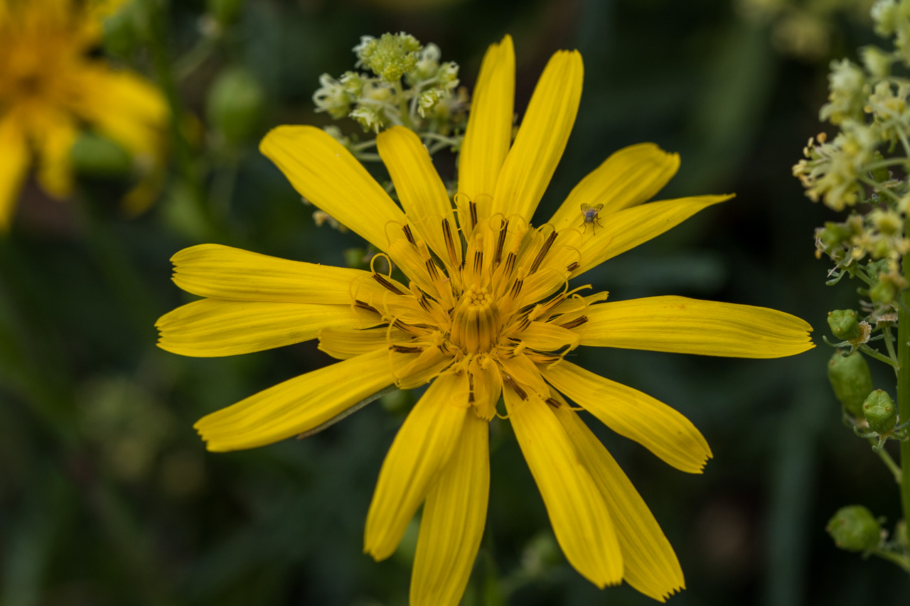 Wir gehen ein Stück westwärts, am Wall blühen noch zahlreiche Blumen, die Sträucher tragen Früchte im Überfluss. Schwarzdorn, Weissdorn und Rosen brechen fast zusammen unter der Last.
