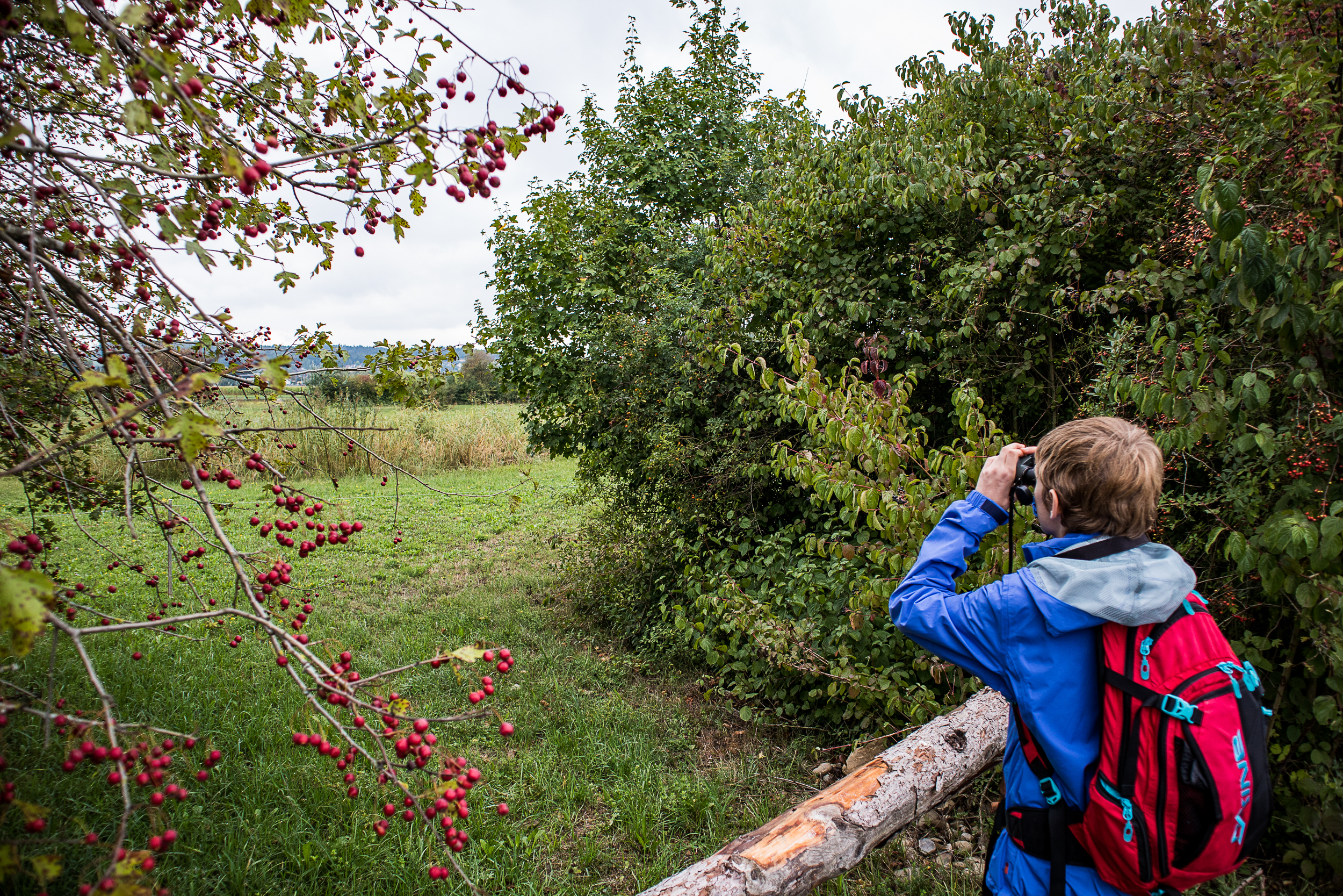 Silvan und ich machen uns also auf zu diesem Gebiet. Den Eingang zu finden ist gar nicht so einfach, besser gesagt, man muss halt um das halbe Areal gehen. Wir haben auf ornitho.ch gelesen, was tags zuvor für Vögel gesichtet wurden, das spornte uns an. Ob wir auch einige davon sehen werden? Auf der anderen Seite von unserem Startpunkt aus erreichen wir den Beobachtungsspot. Wir schauen eine Weile, nehmen Feldstecher und Fernrohr hervor, aber wir sehen nichts, keinen Vogel im Gebiet, ausser den zahlreichen Rauchschwalben, die zwitschernd auf Insektenfang sind. Aber kein Vogel im Gebüsch, keiner am Boden, nichts.