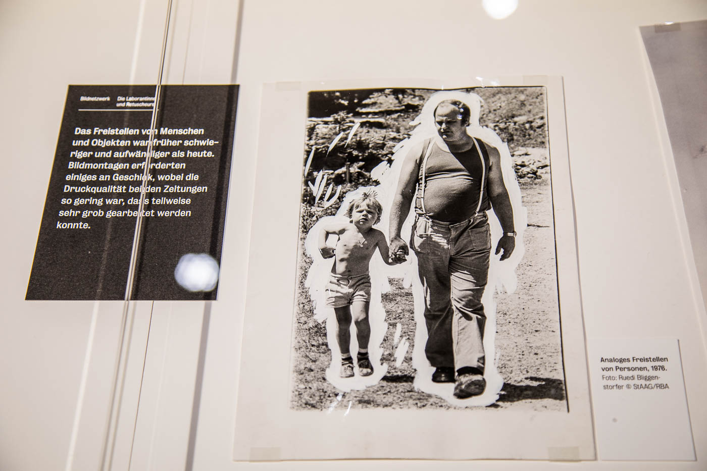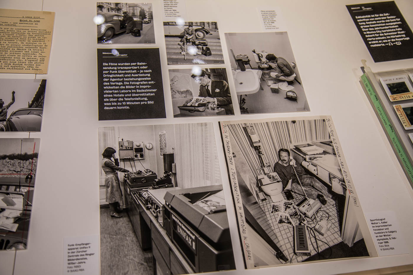 Eine Bilderausstellung aus vordigitaler Zeit, die noch bis am 8. Juli 2018 besucht werden kann. Es geht nicht hauptsächlich um die Bilder selber, sondern um die Geschichte dahinter und wie die Fotos in die Zeitungen und Magazine kamen. Heute können wir schmunzeln darüber. Wie einfach haben wir es doch! Bild knipsen, Sekunden später kann es auf der ganzen Welt angeschaut werden. Bildreporter mussten früher den Film zuerst in einem mobilen, improvisierten Fotostudio entwickeln und vergrössern, ehe sie das Bild, wenn es eilte und sie die Möglichkeit hatten, mit Funk übertragen konnten, was zehn Minuten dauern konnte.