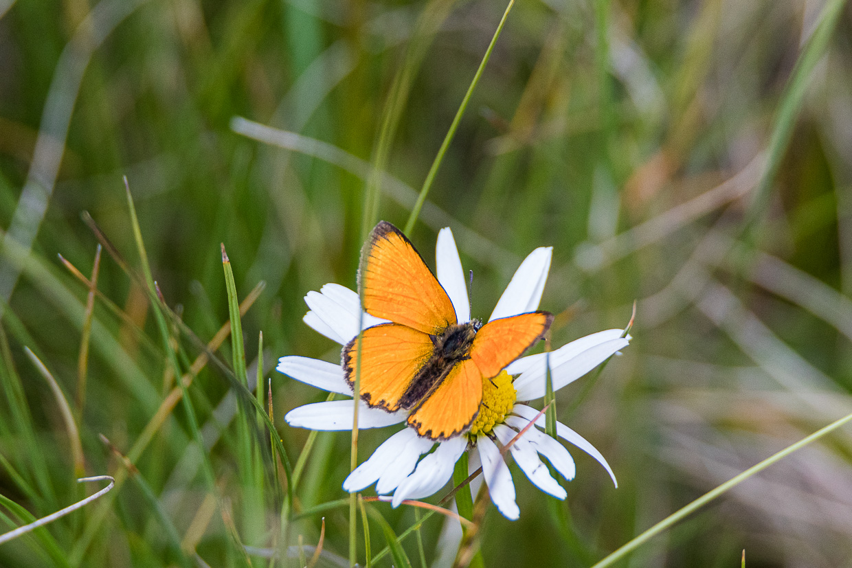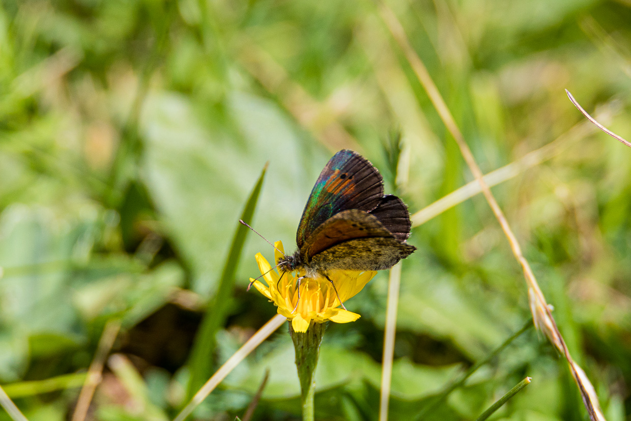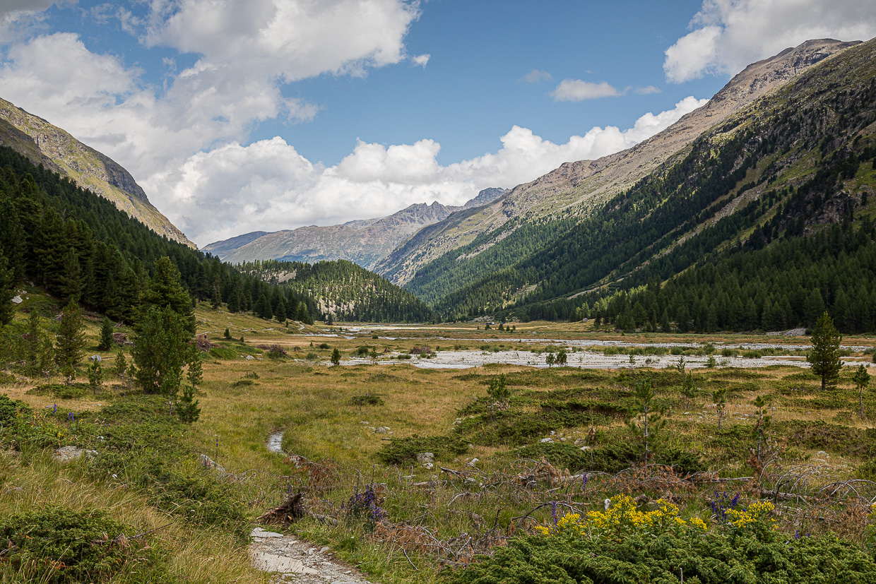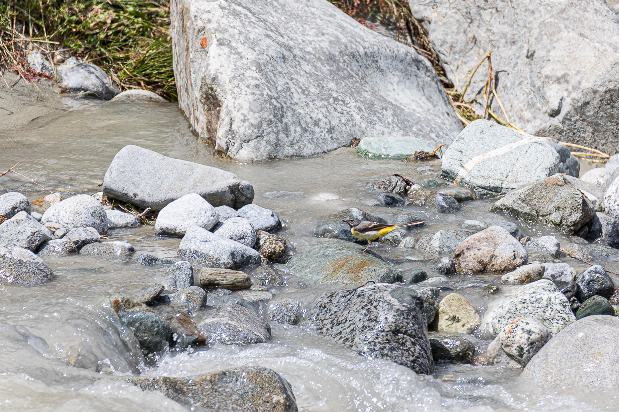 Auf dem weiteren Weg locken wieder die Schmetterlinge, Silvan kann kaum aufhören mit fotografieren. Ich versuche mich auch als Naturfotograf, meine Ausrüstung ist aber nicht ideal dafür, aber das Resultat ist auch nicht übel. Ab jetzt halten wir nicht mehr so oft an, denn der Tag ist schon fortgeschritten. Unterhalb des Wasserfalls vom Morgen passe ich den Bergstelzen ab, ich erwische sie auch recht schön. Der Wald ist nun nicht mehr märchenhaft, aber wir geniessen es doch. Und merken, wie weit wir eigentlich gegangen sind, denn es zieht sich. Am Schluss haben wir rund 22 Kilometer in den Beinen. Über die Fuorcla Surlej wären es nur 14 Kilometer gewesen, dafür mehr Höhenmeter. Diese sparen wir uns fürs nächste Mal auf.