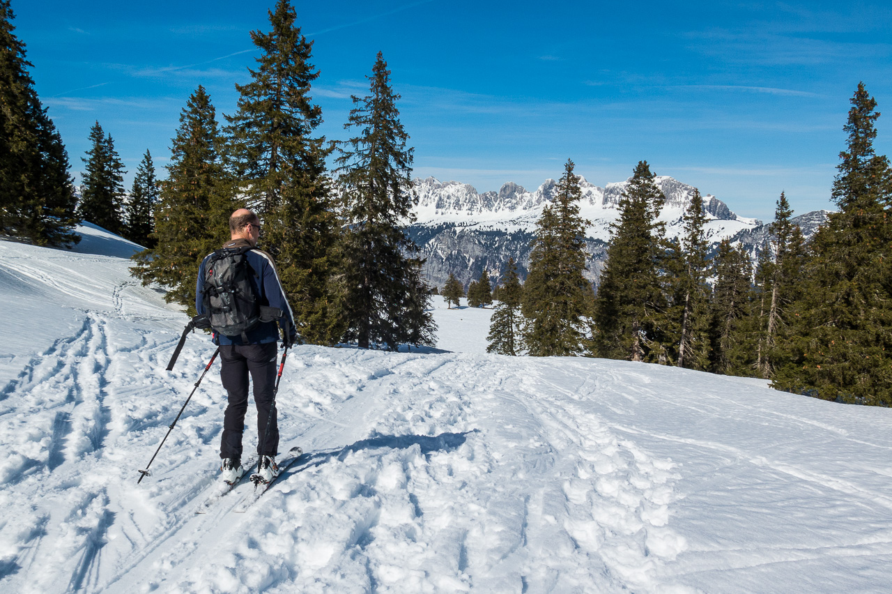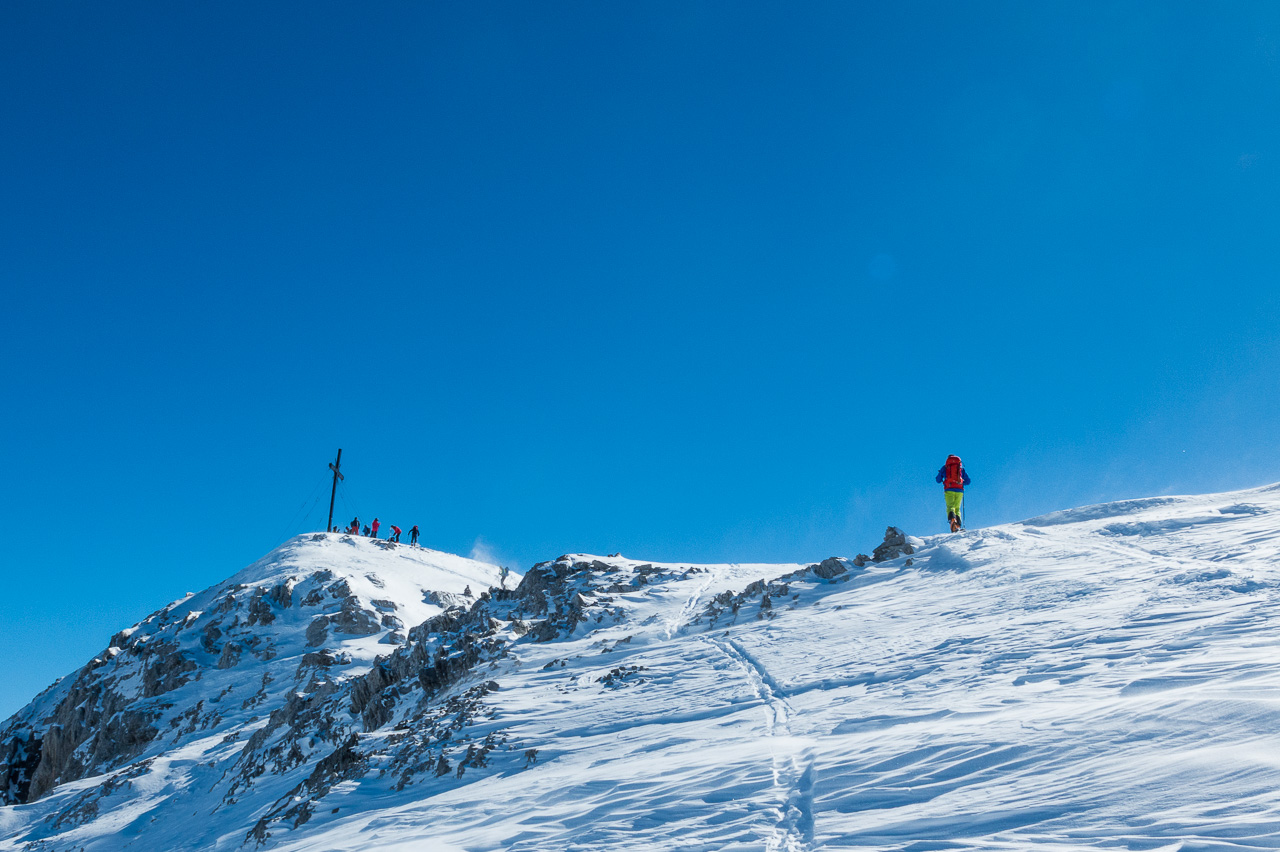 Der Tag kurz zusammengefasst: In der Schweiz aufgewacht, in Liechenstein auf Skitour, in Österreich zu Bett gegangen. Aber im Detail. Wir fahren nach Malbun in Liechtenstein, von wo wir zum Sassförkle aufsteigen. Eine kurze Abfahrt unterbricht den Aufstiegsfluss, aber bald sind wir wieder im Tritt. Auch dieser Gipfel bietet eine grossartige Aussicht bis zum Bodensee und ins Toggenburg.
