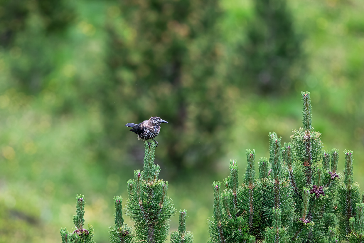 Wir starten die Wanderung auf dem Ofenpass. Den Il Jalet haben wir vor zehn Jahren bereits bestiegen, im Anschluss an den Piz Daint. Diesmal ist er der Hauptgipfel. Wie immer sind wir alleine unterwegs, es ist still. Auf den Bergföhren sitzen Fichtenkreuzschnäbel. Um auf den Gipfel zu gelangen, müssen wir den Il Jalet zu dreiviertel umrunden. Silvan interessiert sich aber überhaupt nicht dafür, er ist ganz vertieft in die Schmetterlingssuche. Die Frau und ich geniessen derweil die Aussicht vom Il Jalet. Gemeinsam steigen wir wieder ab. Wir sind noch nicht weit gekommen, aber schon lange unterwegs, weshalb wir eine Pause einlegen. Auch diese bleibt nicht ungenutzt, wir entdecken eine Heckenbraunelle und Tannenhäher, Silvan einmal mehr Schmetterlinge.