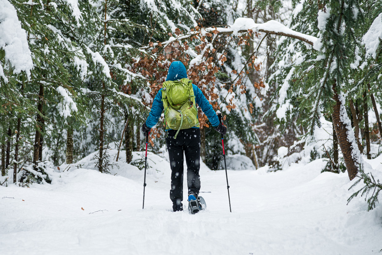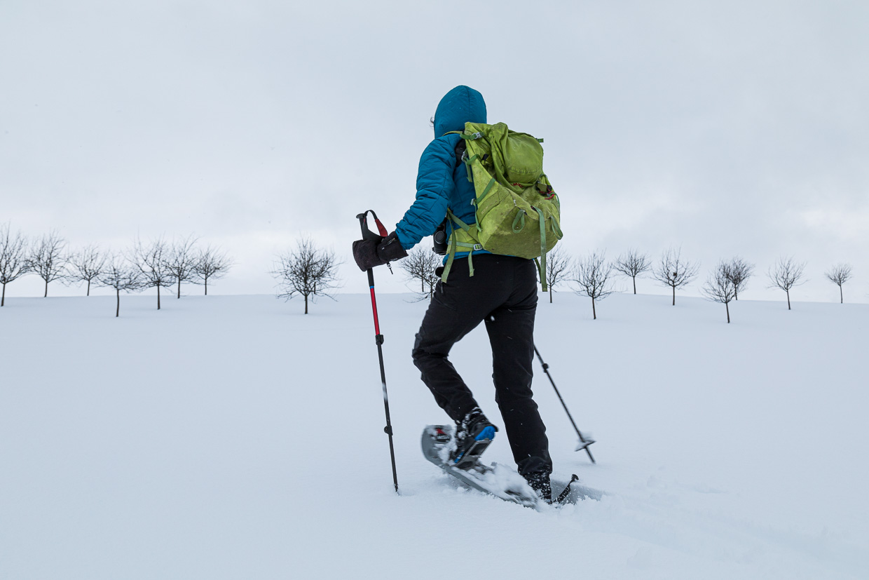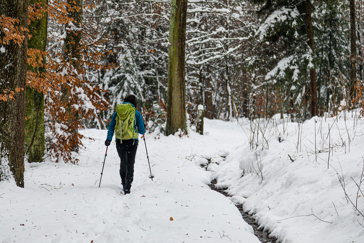 Endlich wieder mal richtig Winter im Flachland! Auf den Strassen herrschte deswegen ein Riesenchaos, wer nicht musste, ging nicht vor die Türe. Ausserdem ist ja immer noch Pandemie, da sollte man sowieso nicht herumreisen. Was andere als unakzeptable Einschränkung der Freiheit empfinden, ist für uns Freiheit: Die Ruhe geniessen, neues ausprobieren, zum Beispiel eine Schneeschuhtour vor der Haustüre starten und neue Wege finden.