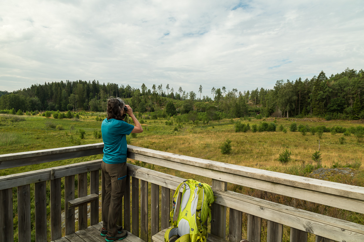 Wir hatten wieder einmal einen Lokationswechsel. Auch den nutzten wir für einen Besuch eines Naturreservats bei Uddevalla. Ein Aussichtsturm gab uns einen guten Überblick, allerdings müsste zuerst etwas los sein, um etwas zu erblicken. Erst mit der Zeit entdeckten wir Neuntöter. Es wurden immer mehr, am Schluss zählten wir rund ein Dutzend. Auch ein Wendehals gesellte sich kurz hinzu. Wir wanderten weiter zu einem See, immer noch mit der leisen Hoffnung, Sterntaucher zu finden. Kurz sahen wir einen Prachttaucher, zum Fotografieren war er aber viel zu weit weg.