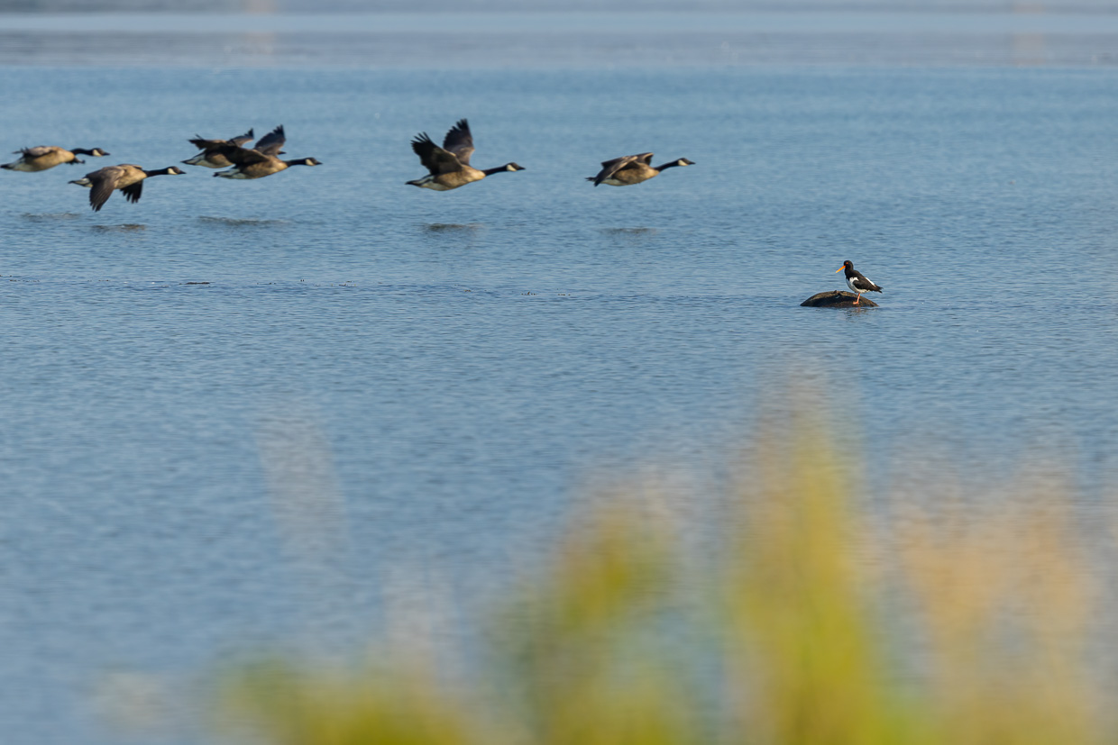 So fuhren wir weiter nach Tofta, ebenfalls an der Küste gelegen. Allerdings weiss man nicht immer genau, ob man jetzt am Meer oder an einem See ist, so zerklüftet ist die Küste. Am Ziel strebten wir einer Marschfläche zu, viele Graugänse waren dort, auch Watvögel, darunter ein Grosser Brachvogel.