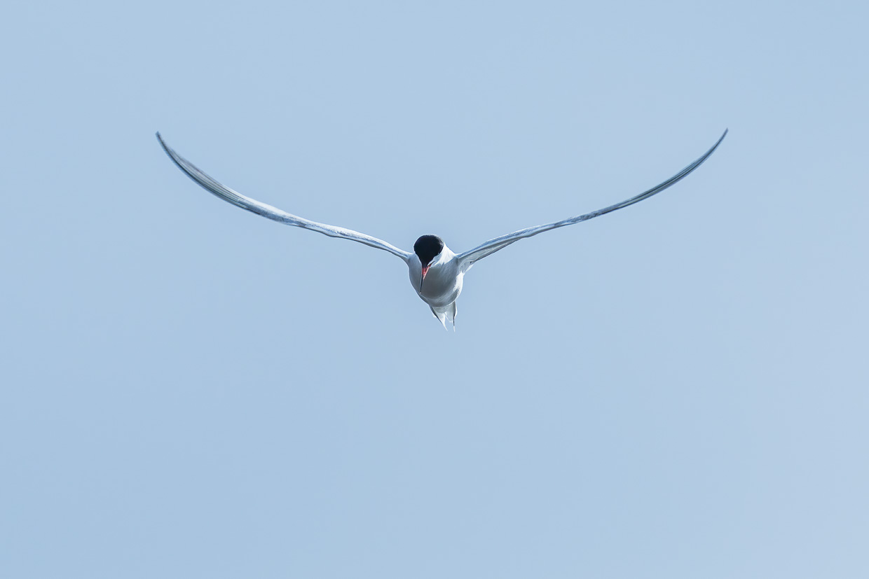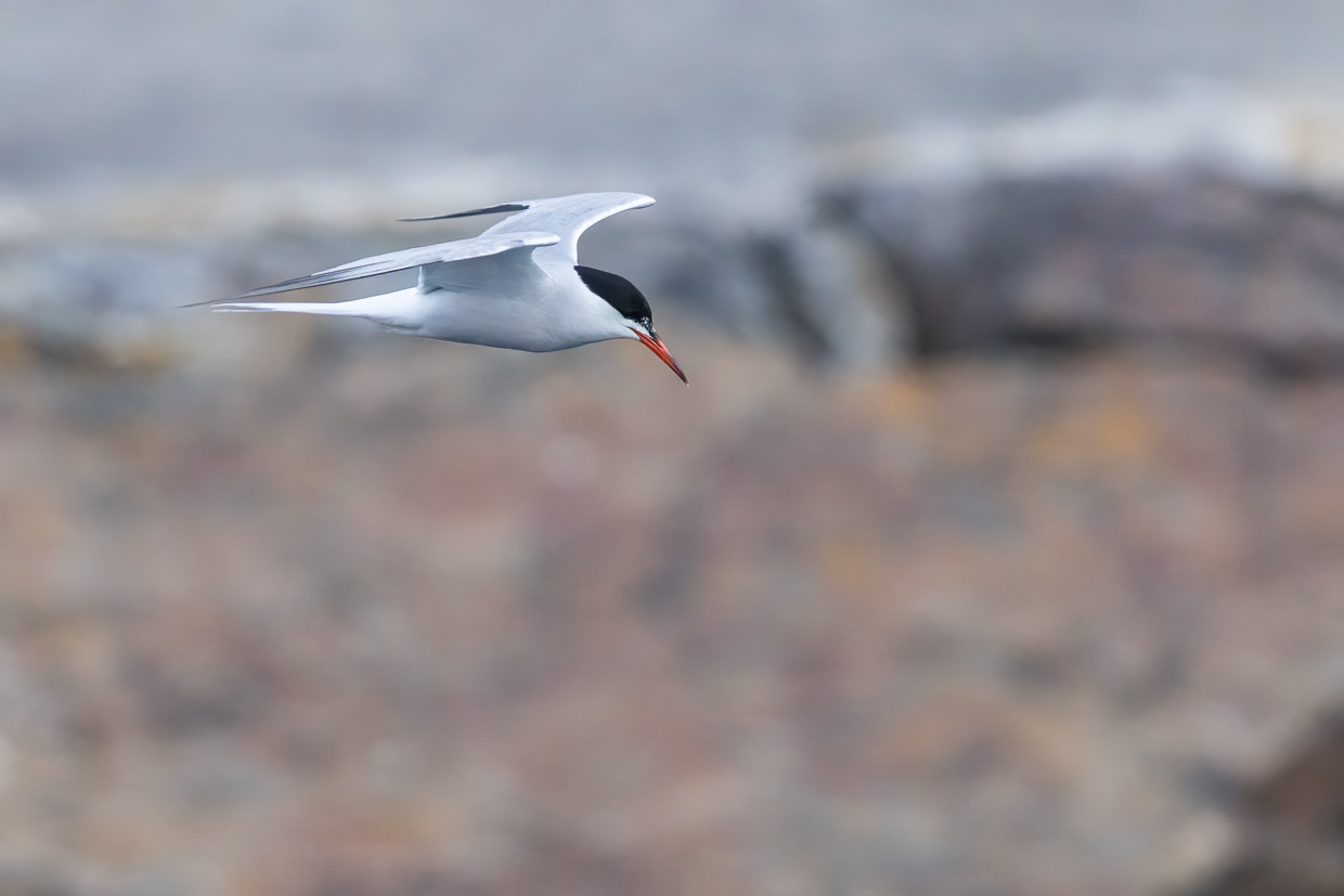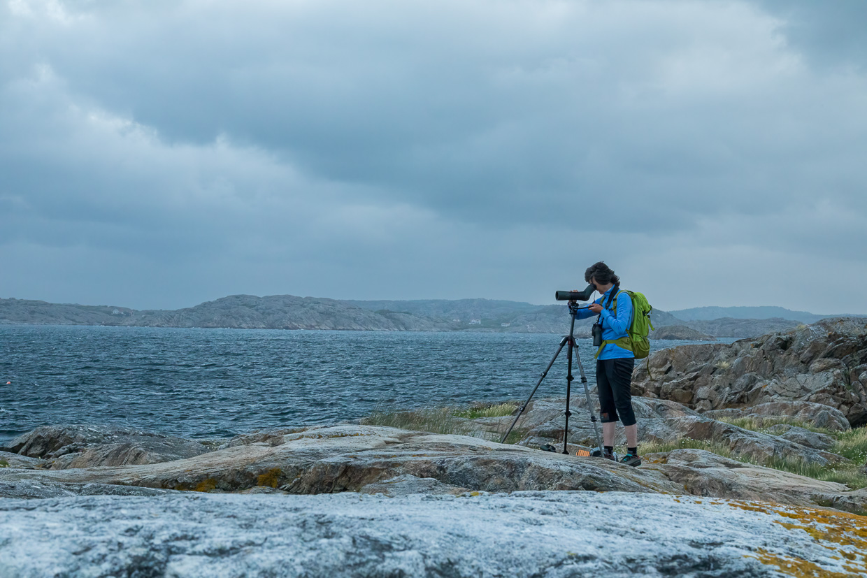 Im Hafen schweben Flussseeschwalben, immer nach Beute Ausschau haltend. Ein ideales Sujet für mich. Weiter draussen soll ein Hide sein, wir suchen den auf. Wir zerren und hebeln am Verschluss, als plötzlich die Türe aufgeht. Da ist tatsächlich jemand drin! Er stellt sich als Betreuer dieses Hides vor. Davor ist allerdings nicht viel los, ein paar Möwen und Kormorane fliegen bei diesem Sturm. Der Betreuer weist uns darauf hin, dass weit draussen ein Basstölpel fliege. Wir versuchen mit dem Fernrohr, ihn zu erspähen, haben aber keine Chance. Der Vogel, den ich sehe, könnte auch eine Möwe sein. Nach einer Weile kehren wir wieder um und fahren nach Stenungsund, wo es weniger windet und Kaffee und Kuchen hat sowie Strom fürs Auto.