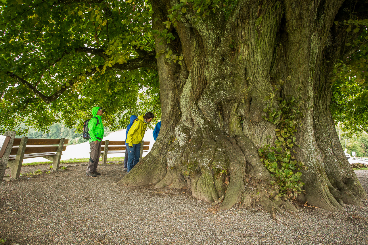 Treffpunkt der Exkursion war die berühmte Linde von Linn, mit 25 Metern Höhe und einem Umfang von 11 Metern dem mächtigsten Baum im Kanton Aargau. Sein Alter wird auf rund 800 Jahre geschätzt. Trotz dem regnerischen Wetter trafen rund 20 Personen ein, die meisten vom örtlichen Vogelschutzverein. Die Begrüssung fand am anderen Ende des Dorfes statt, welches nur aus ein paar Bauernhäuser und anderen Häuser besteht. Linn liegt im Jurapark Aargau, einem von 19 Schweizer Naturpärken. Ob der Nationalparkkandidat Locarnese immer noch dazugehört nach der Ablehnung, weiss ich allerdings nicht. Nachdem die Gemeinden des Park Adula ein Nationalparkprojekt abgelehnt hatten, verlor der Park seinen Status.
