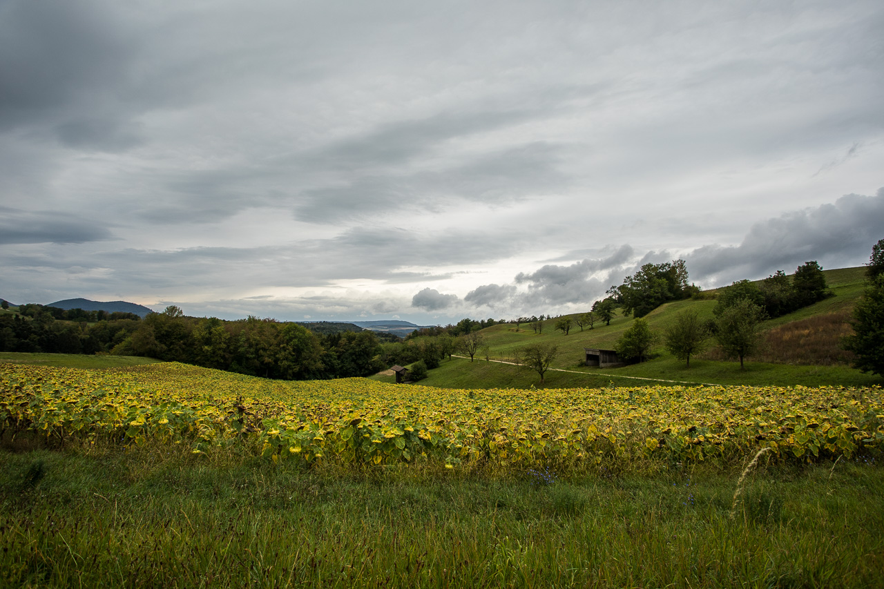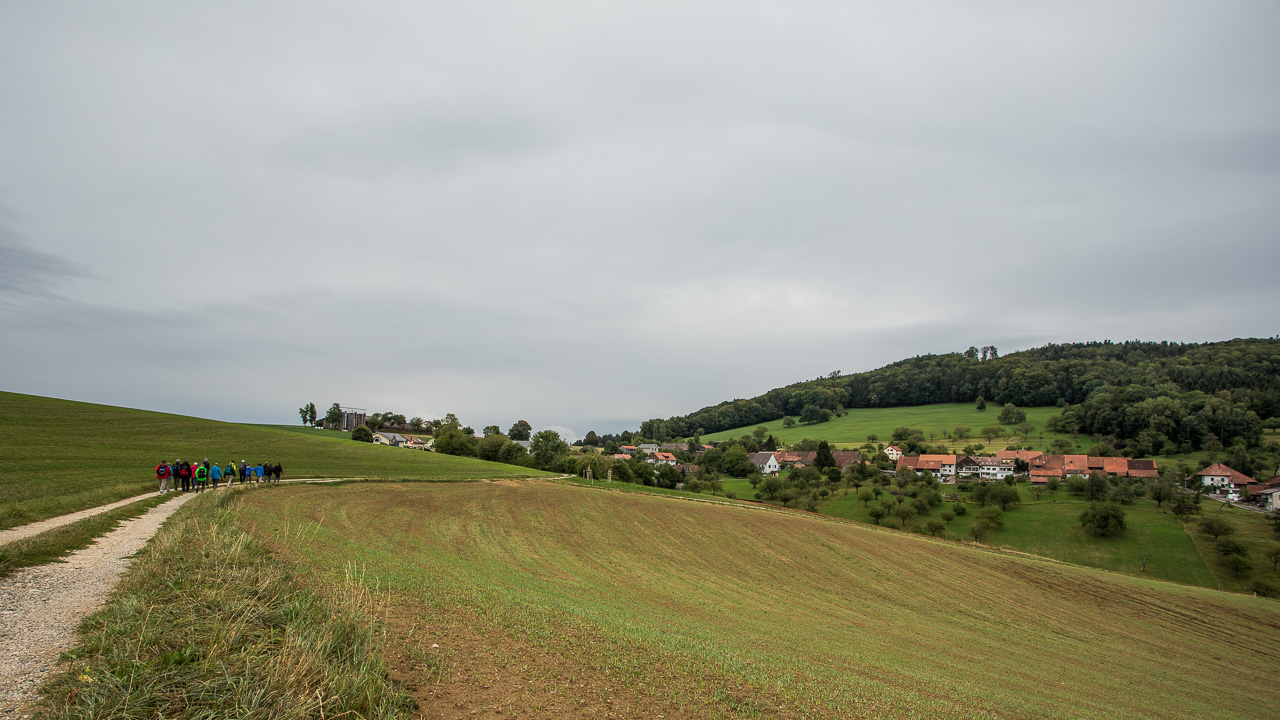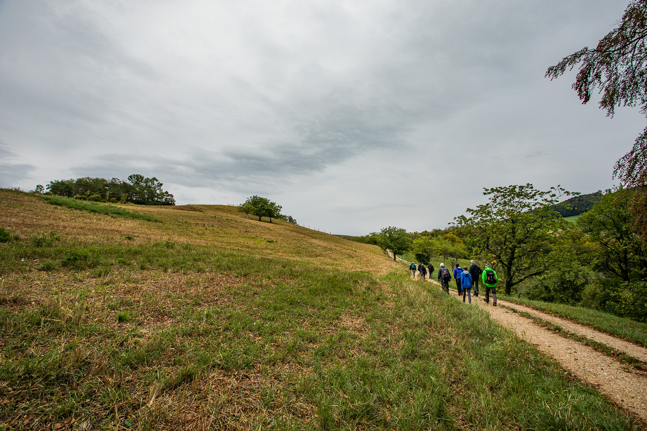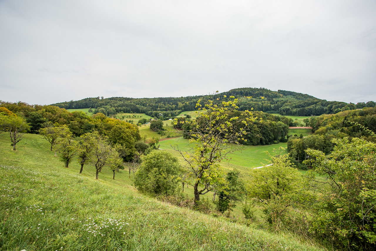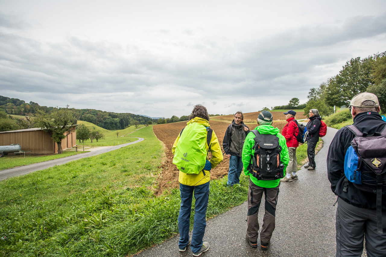 Die Zeit ist um. Verrückt, wie schnell sie verfliegt, wenn man mit Fachleuten durch so ein spannendes Gebiet zieht. Wir folgen den Schildern des Natur- und Kulturweges zurück ins Dorf, geniessen nochmals die typische Jurahügellandschaft und kehren mit vergrössertem Wissen wieder heim.