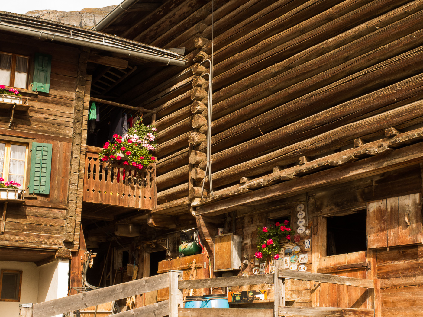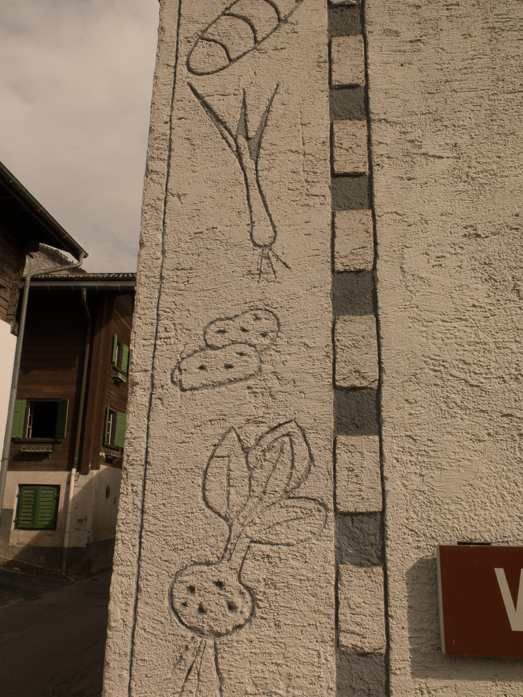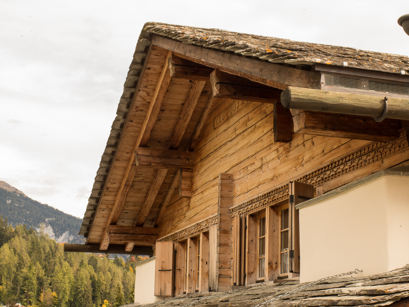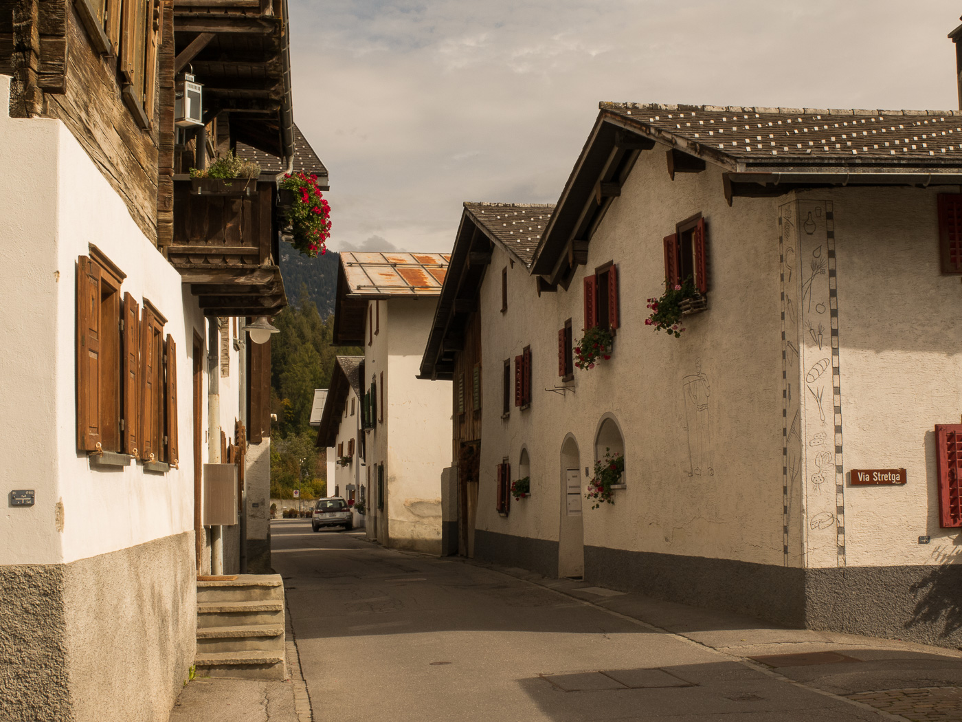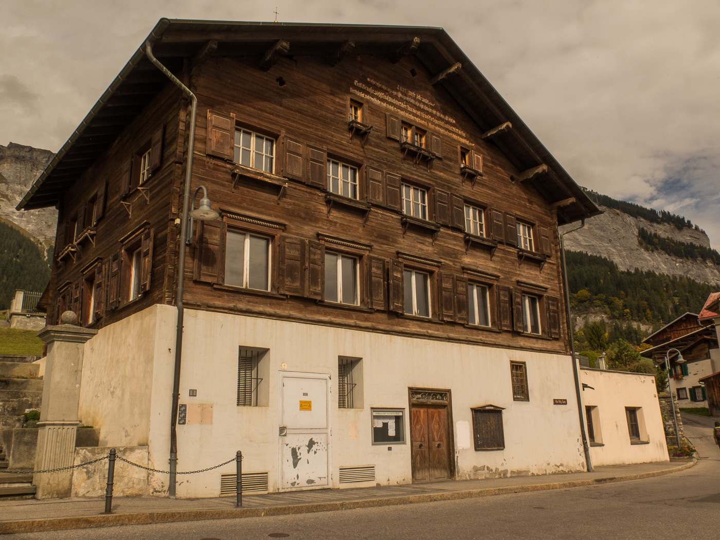 Das Dorf Flims ist unterteilt in Flims Dorf und Flims Waldhaus. Während Flims Dorf noch ein paar alte Häuser hat, ist Flims Waldhaus unterhalb des Luxushotels entstanden. Auf einem alten Bild, wahrscheinlich noch aus dem vorletzten Jahrhundert, das in der Conditorei Crest in Flims hängt, ist ein sehr kompaktes Dorf zu sehen, das umgeben ist von Wiesen. Leider hat sich Flims wie alle anderen Orte in der Schweiz auch ausgebreitet, wie ein Geschwür fressen sich die Neubauten in die Landschaft hinein. Die ursprünglichen Häuser sind sehr schön renoviert, Altes mit Neuem verbunden worden. Hier ein paar Beispiele: