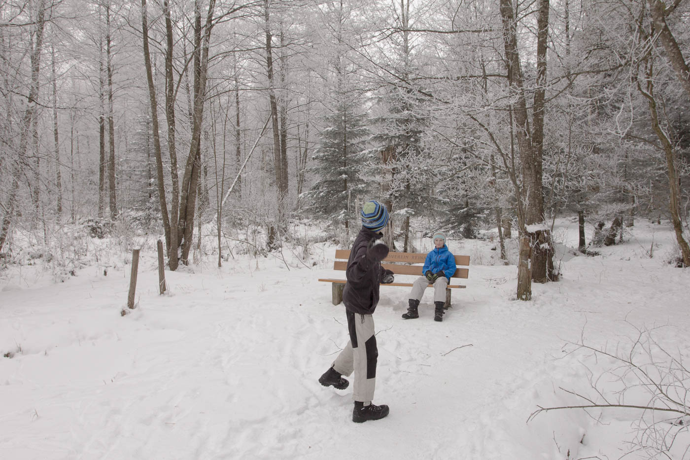 Aber die Kinder sollen natürlich den Schnee auch geniessen. Da fliegen dann viele Schneebälle hin und her. Und zwischendurch gibt es ein Kräftemessen im Schnee. Der Winter ist so schön!