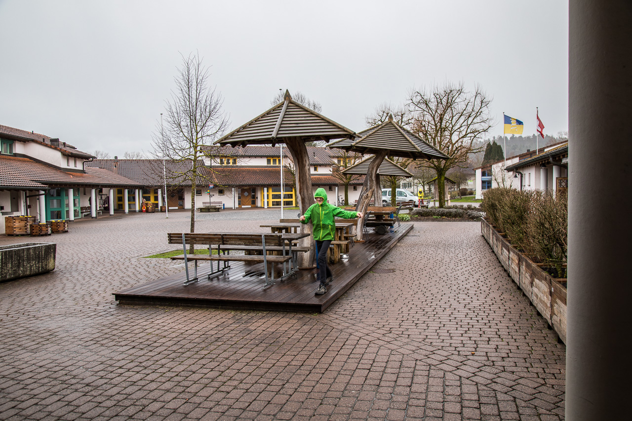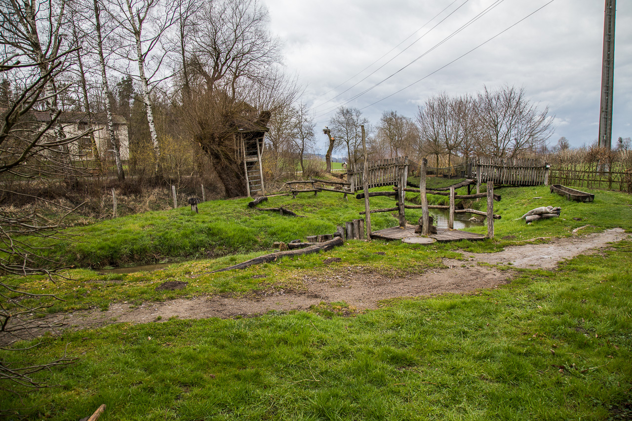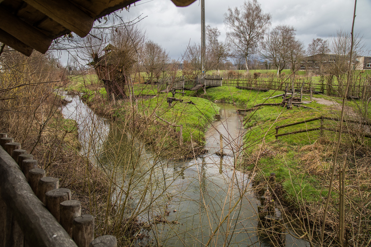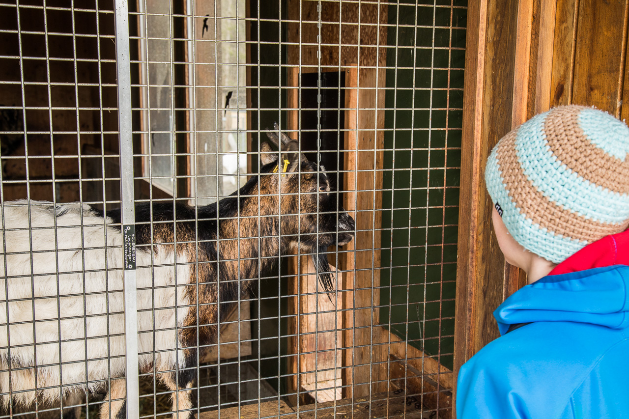 Es ist Ostern, das Wetter wechselhaft. So wechselhaft, dass wir dem Auto bei Sonnenschein entsteigen und fünf Minuten später regnet es. Zum Glück sind wir gerade bei den Kleintierställen und können unterstehen. Auch den Zwergziegen ist es zu feucht, sie unterqueren den Gehweg und gehen in den Stall zurück. Kaninchen und Enten können hier von den Kindern bestaunt werden, ebenso Esel. Es sind alte, vom aussterben bedrohte Haustierrassen, die von Pro Specie Rara gefördert werden. Wir begeben uns zuerst mal ins Café Moospintli, um auf die nächsten Sonnenstrahlen zu warten, die dann auch bald kommen. Aber kaum sind wir wieder draussen, setzt der nächste Schauer ein, richtiges Aprilwetter.