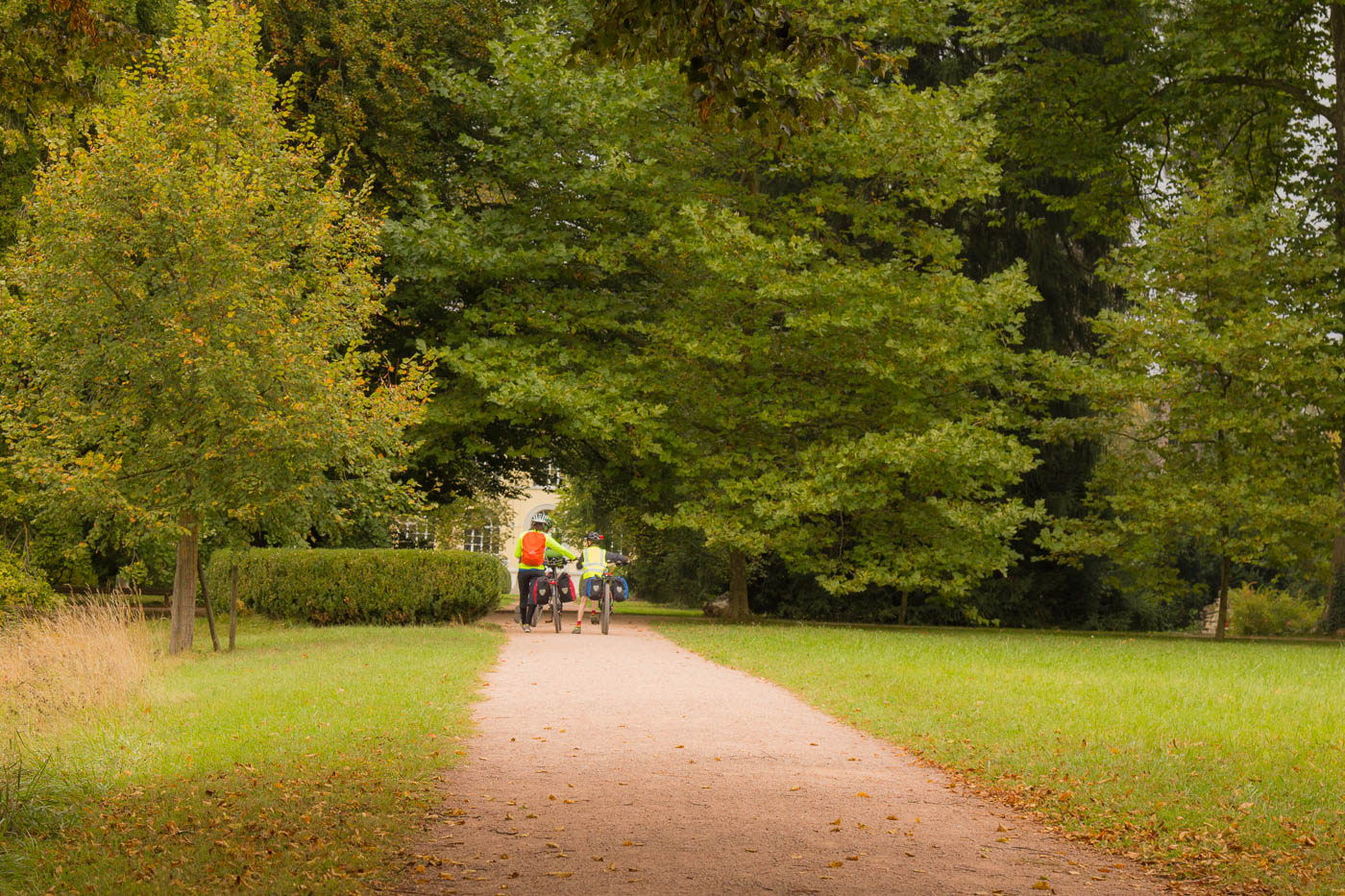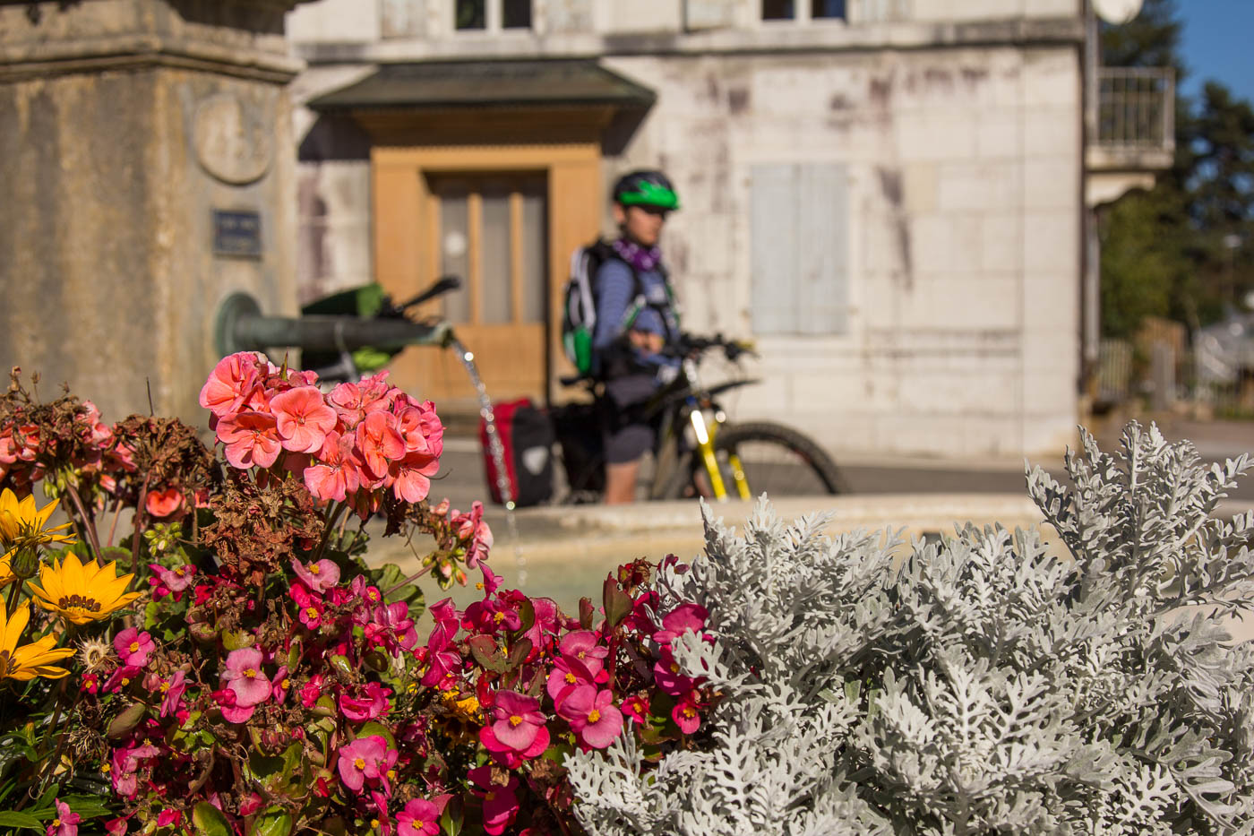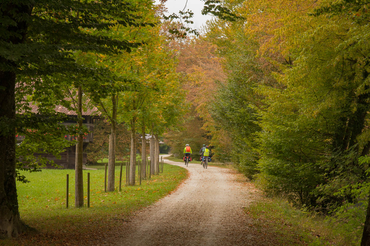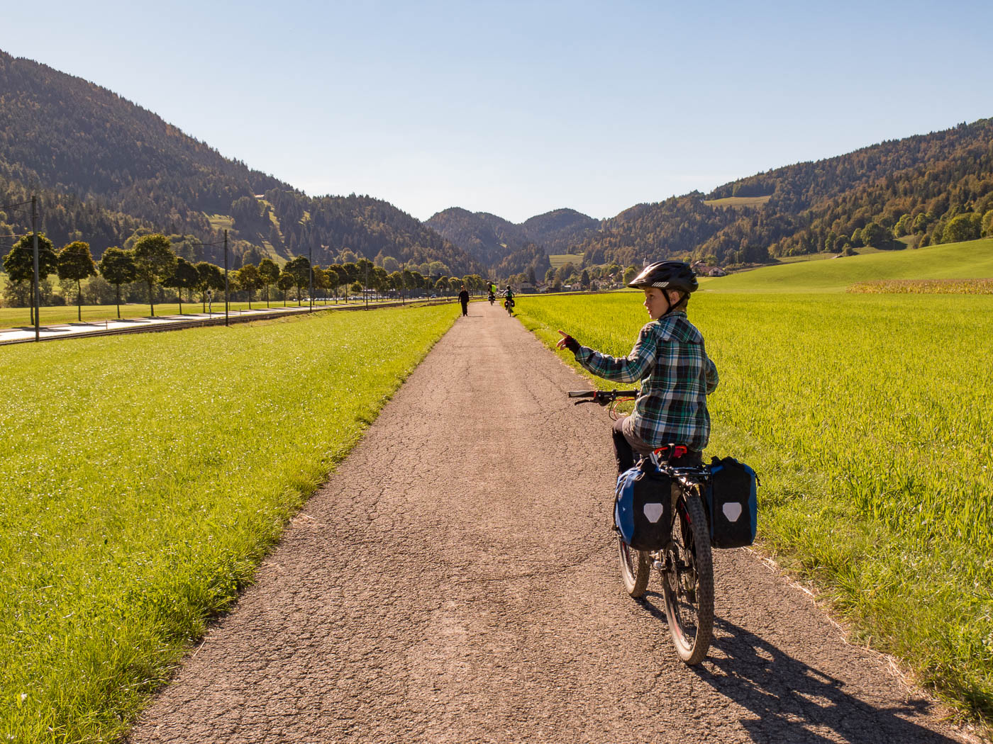 Für den heutigen Tag war Sonne angesagt, aber auch sehr herbstliche Temperaturen. Wir kleideten uns entsprechend ein, Kappe, Handschuhe und Jacken kamen zum Einsatz. Die ersten Kilometer durch die Stadt waren mühsam, soviel Verkehr sind wir Landeier uns nicht gewohnt. Endlich konnten wir aber auf eigenen Wegen fahren, obwohl auch hier ab und zu ein Fahrzeuge vorbeibrauste, war es um Welten besser als vorher. Die Sonne tat ihre Wirkung, wir begannen uns von den wärmsten Teilen zu entledigen. Die Steigungen waren moderat, die Landschaft jurassisch schön. Dort, wo die Sonne soeben den Boden erreichte, verdampfte der Reif (es war wirklich kalt in der Nacht).