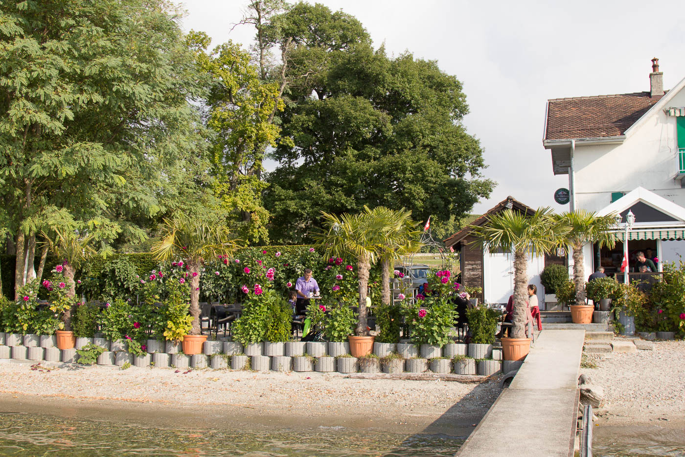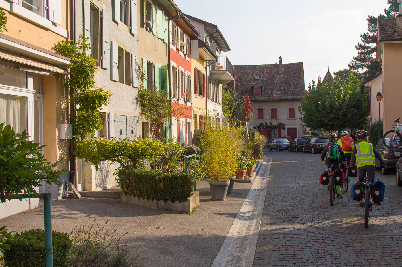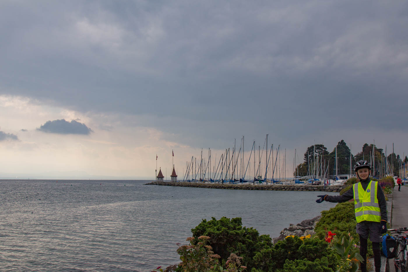 Die Juraroute war zu Ende, unsere Neugier aber noch nicht. Wir wollten weiter nach Lausanne und wechselten auf die Rhoneroute. Wir flüchteten erst mal vor dem Verkehr aus Nyon, bis nach Gland wurde es aber nicht besser. Erst ab dort fuhren wir wieder über Felder und durch Obstplantagen. Und dann durften wir einem Naturschauspiel beiwohnen: Starenschwärme. Nein, nicht ein paar Dutzend Stare, sondern tausende und abertausende! Der Rest der Tour war jedoch frei von Höhepunkten, zeitweise wird man auf stark befahrene Hauptstrassen geleitet, ein Unding, das sich bestimmt besser lösen lassen könnte. Mit Kindern, die noch nicht so erprobt sind auf dem Velo, ist diese Strecke nicht empfehlenswert. Erwähnenswert sind noch die mittelalterlichen Städte St-Prex und Morges. Leider sind diese nicht autofrei, was ihre Attraktivität massiv mindert. Statt einer schönen Strandpromenade mit Restaurants muss man Autoverkehr aushalten. Weiter ist noch das Restaurant „La Pêcherie“ kurz vor Allaman erwähnenswert. Es liegt direkt am See, man fühlt sich wie am Mittelmeer.