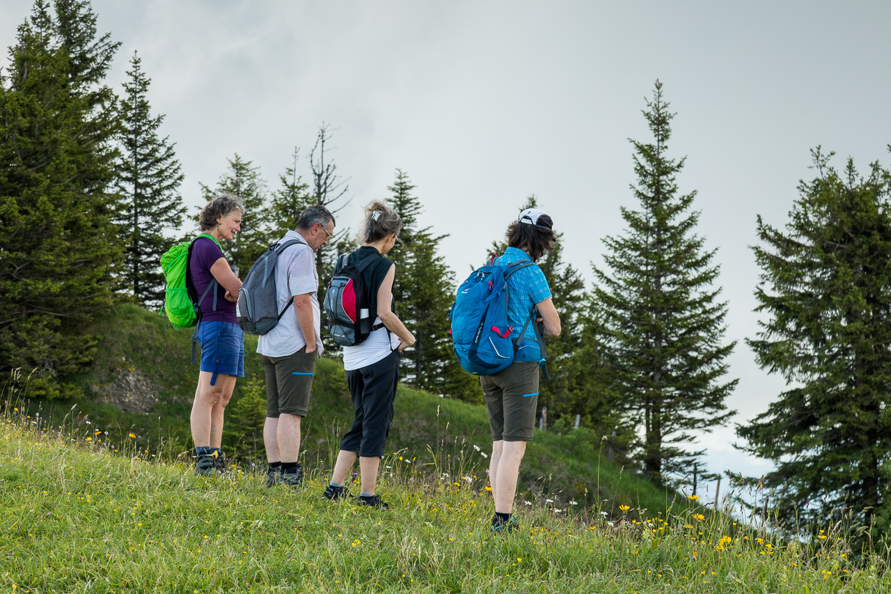 Wir treffen uns um acht Uhr in Goldau. Das Dorf ist noch fast unbelebt, wir nehmen den Frauenschuh-Weg. Gewiss, die dürften jetzt, Ende Juni, verblüht sein, wir hoffen aber auf andere Orchideen. Wir steigen den Wald hoch, es ist schwül (oder tüppig, wie wir Schweizer sagen). Bald schon säumen die schönen Blumen den Wegrand, Silvan kann mehrere Arten bestimmen. Auch die Frauenschuhe finden wir, sie sind aber erwartungsgemäss verblüht. Wir kommen schnell voran, schneller als vor zwei Jahren, als wir uns hauptsächlich auf die Blumen konzentrierten.