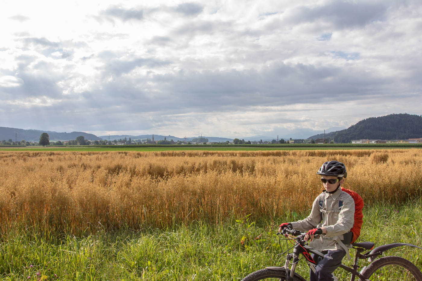 Eine rasante Abfahrt auf der Route 38 bringt uns schnell vorwärts, wir folgen dieser aber nur bis Punkt 705, wo wir wieder auf Feldwege wechseln. Lustig sind ja zum Teil auch die Flurnamen, wie Ober Schlämpen oder Hünkihof. An diesen Orten kommen wir vorbei, der eine oder andere Singletrail sorgt für Abwechslung. Eine Käserei bietet Käse feil, da kann die Frau nicht widerstehen (und er ist auch sehr gut) und kauft einen Mocken. Ab hier geht es fast nur noch abwärts, und ehe wir es uns versehen, sind wir wieder im Talboden bei Gettnau und sind auf dem Radweg der Route 94 L’Areuse – Emme – Sihl. Moment, Areuse waren wir schon, Emme auch, Sihlwald ebenfalls. Schon rotiert und plant es wieder in meinem Kopf. Bald sind wir wieder am Ausgangspunkt bei der Agrovision. Den Süssmost haben wir uns verdient. Herrlich, wie der mundet nach der Anstrengung!