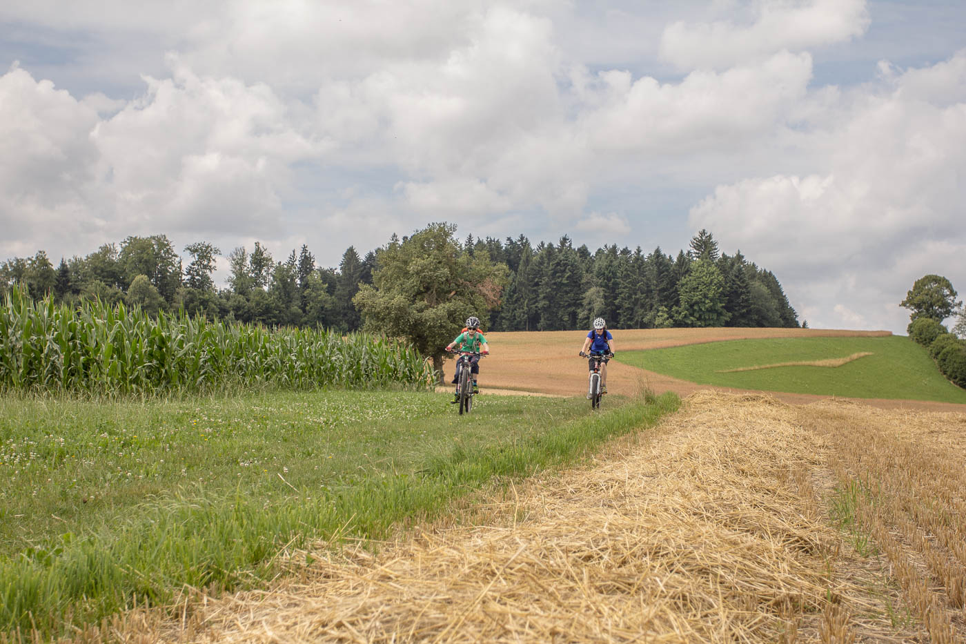 Im Luzerner Hinterland, westlich von Sursee, gibt es viele Hügel, die nicht nur bewaldet sind und geradezu zum Biken einladen. Nicht zu viele Höhenmeter, Strassen mit wenig oder keinem Verkehr, Feldwege und Singletrails ergeben einen ausgesprochen bekömmlichen Mix für einen Familienspass erster Güte.