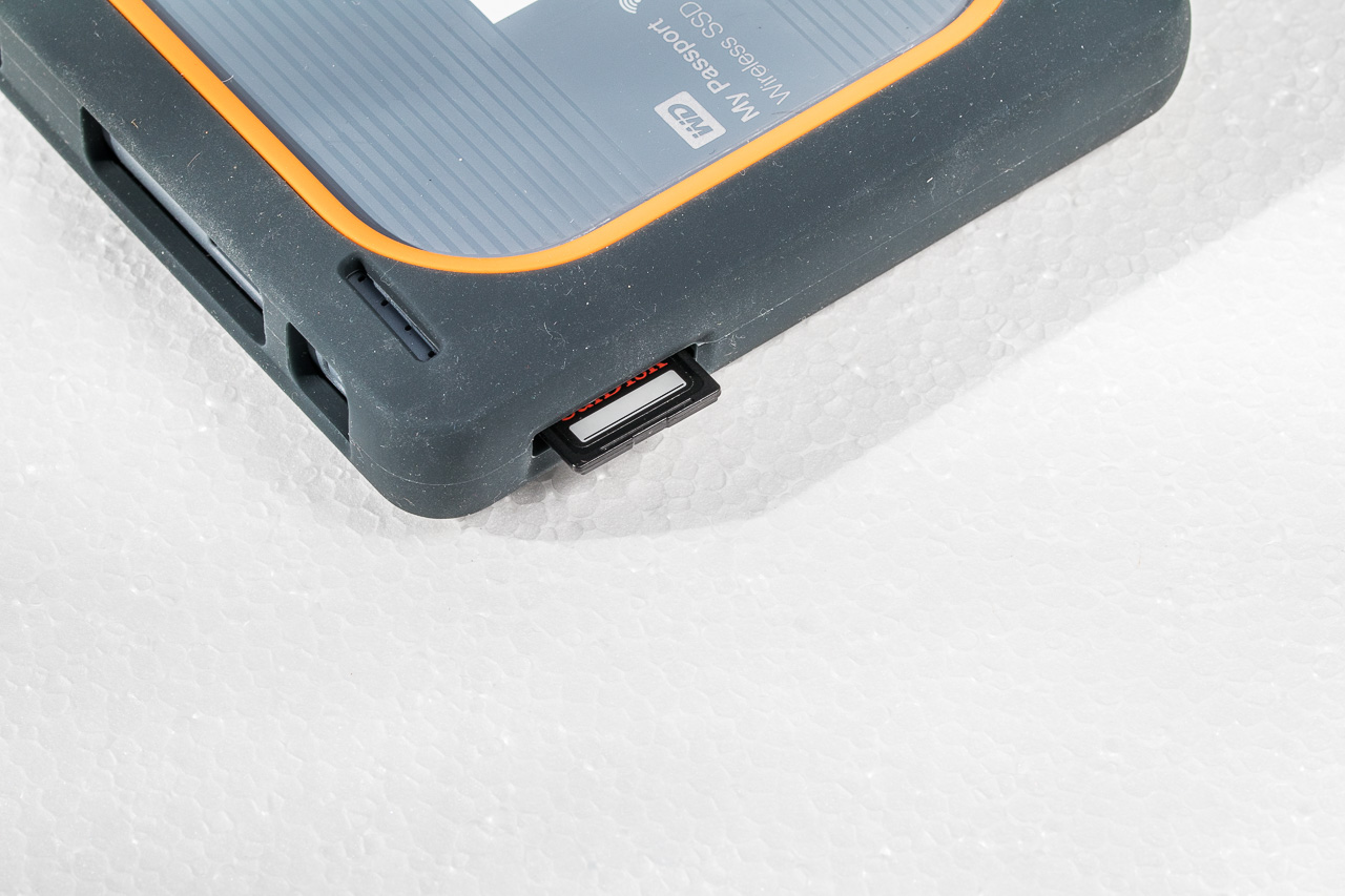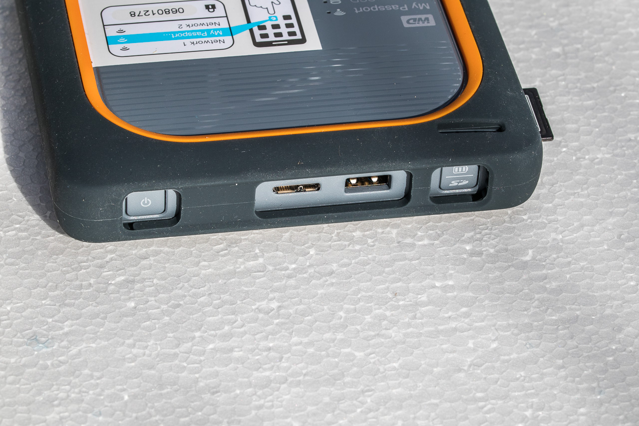 Eine Möglichkeit besteht darin, mittels eines OTG-Cardreaders die Bilder auf ein Android-Smartphone zu sichern. Wer ein iPhone hat, kann diese Möglichkeit sowieso schon mal ausschliessen. Eine bessere und schnellere Möglichkeit ist eine Festplatte. Ich habe mir zur Datensicherung die WD SSD my Passport zugelegt. Sie misst 135 mm x 135 mm x 30 mm und wiegt 446 Gramm. Es gibt sie mit 500, 1000 und 2000 GB Kapazität. Das Gehäuse ist mit einem Gummischutz eingefasst, die Platte erträgt einen Sturz aus einem Meter Höhe. Die Akkulaufzeit soll 10 Stunden betragen, was für mehrere Wochen reicht, wenn man sie nur zur Datensicherung einschaltet.