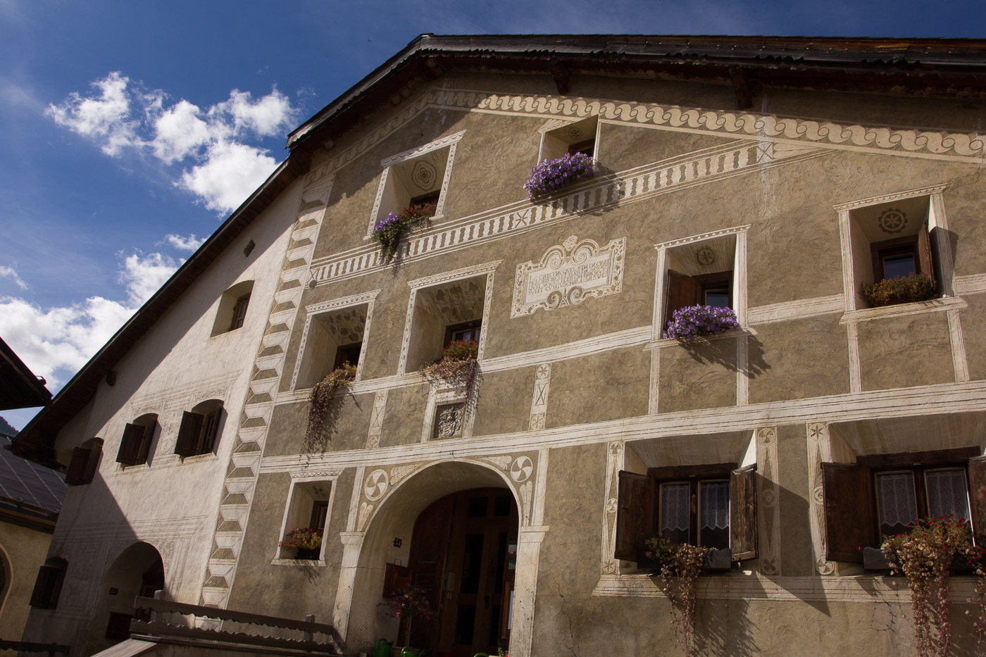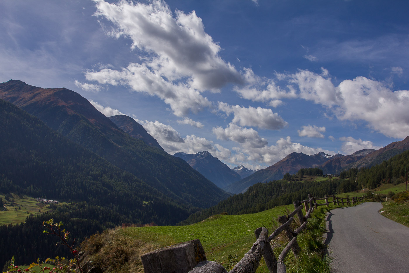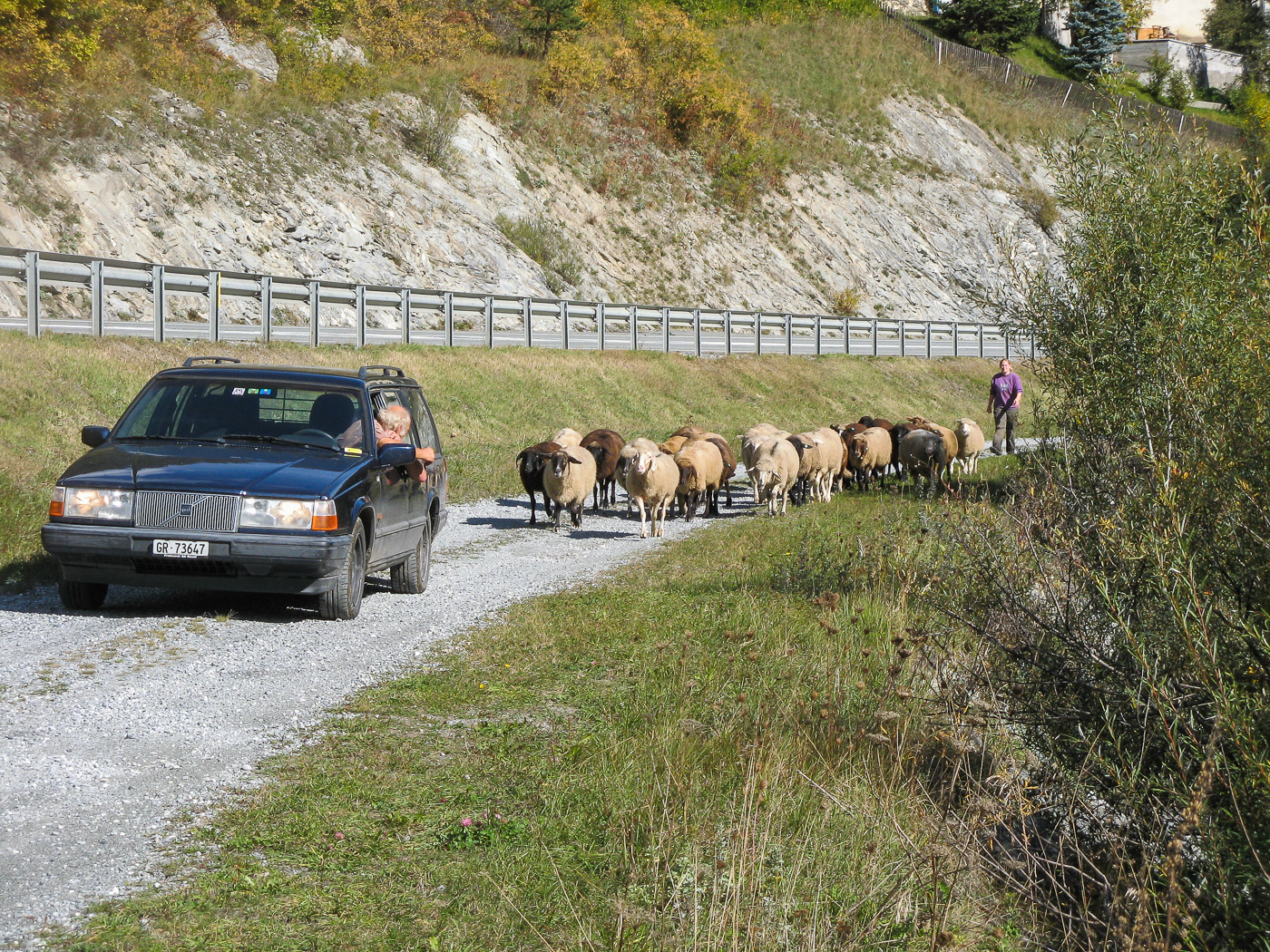 Damit nicht genug. Denn jetzt müssen wir von 1400 müM. hoch nach Guarda, das auf 1650 müM. liegt. Auf einer schönen Alpstrasse fahren wir durch wunderschöne Landschaften mit herrlicher Aussicht, immer unser Zwischenziel vor Augen.