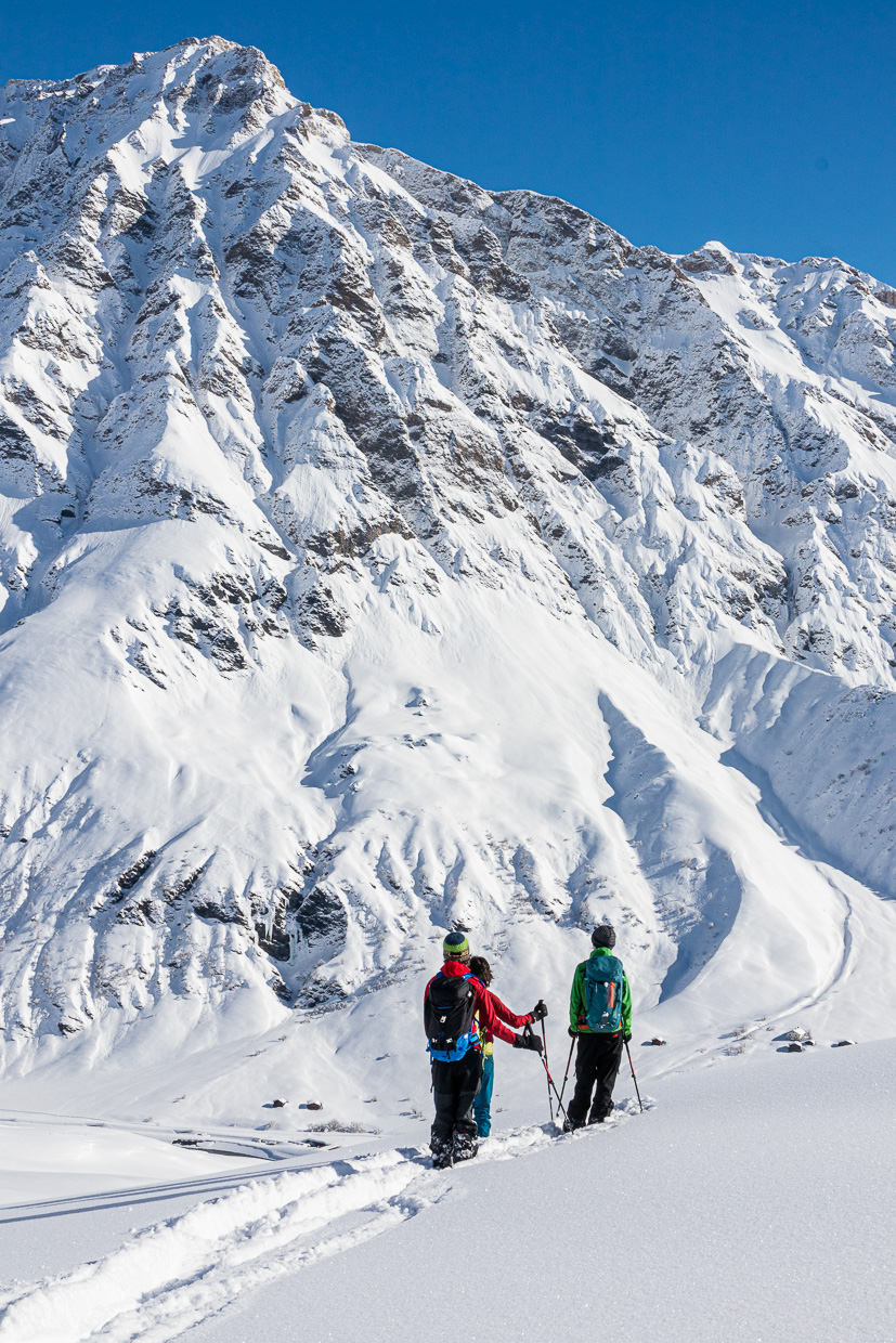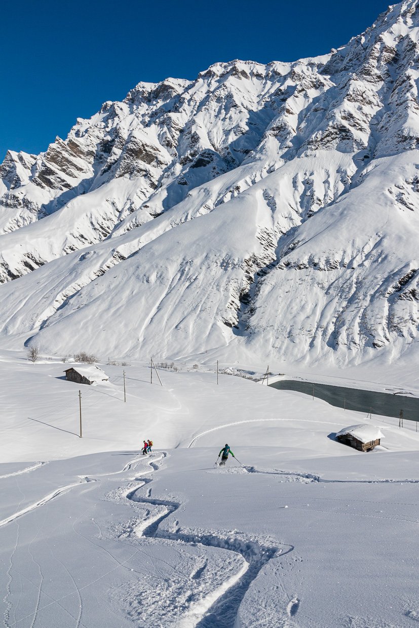 Das Safiental liegt im Naturpark Beverin und ist vom Massentourismus verschont geblieben. Der einzige Skilift im Tal steht in Tenna, der bekannte Solarskilift. Das Gelände ist ideal für Skitouren, meistens unter 30 Grad Hangneigung. Obwohl wir keinen Gipfel erklommen haben, war es ein fantastisches Erlebnis.