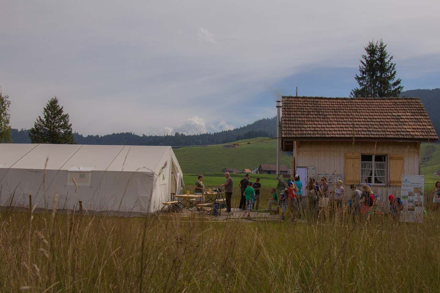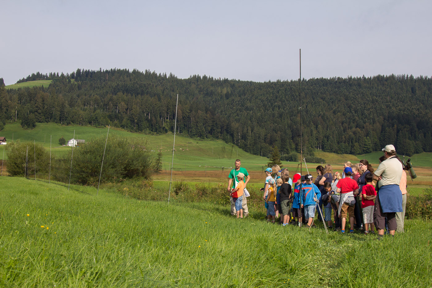 Jedes Jahr führt Birdlife Schwyz Beringungen von Vögeln durch im Rothenthurmer Moor. Diesem Ereignis können auch Interessierte beiwohnen und den Fachleuten Fragen stellen. So machten auch wir uns auf nach Rothenthurm. Die Gegend kannten wir vom letzten Herbst her, diesmal konnten wir aber das schöne Wetter geniessen. Bei der „Beringerhütte“, die eigens für diesen Zweck erstellt wurde, war schon einiges los. Eine Gruppe war bei den Fangnetzen und lauschte den Ausführungen eines Fachmannes.