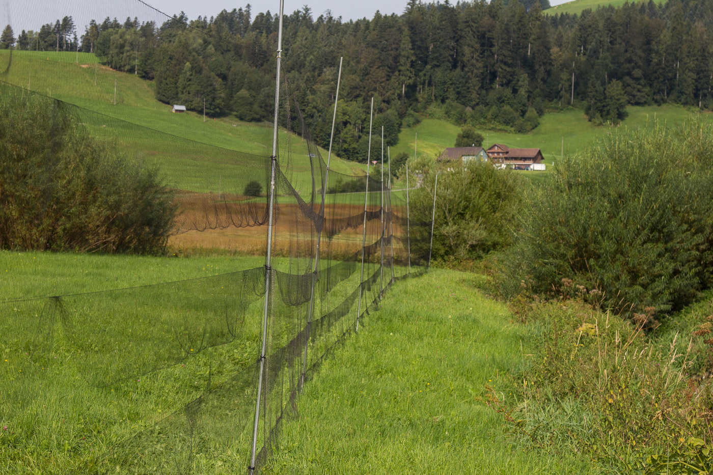 Hier in Rothenthurm werden die Netze zum Glück nur für wissenschaftliche Zwecke aufgestellt. Sie sind so verteilt, dass sie verschiedene Lebensräume abdecken: Offenes Land, Hecke, Wasserlauf.