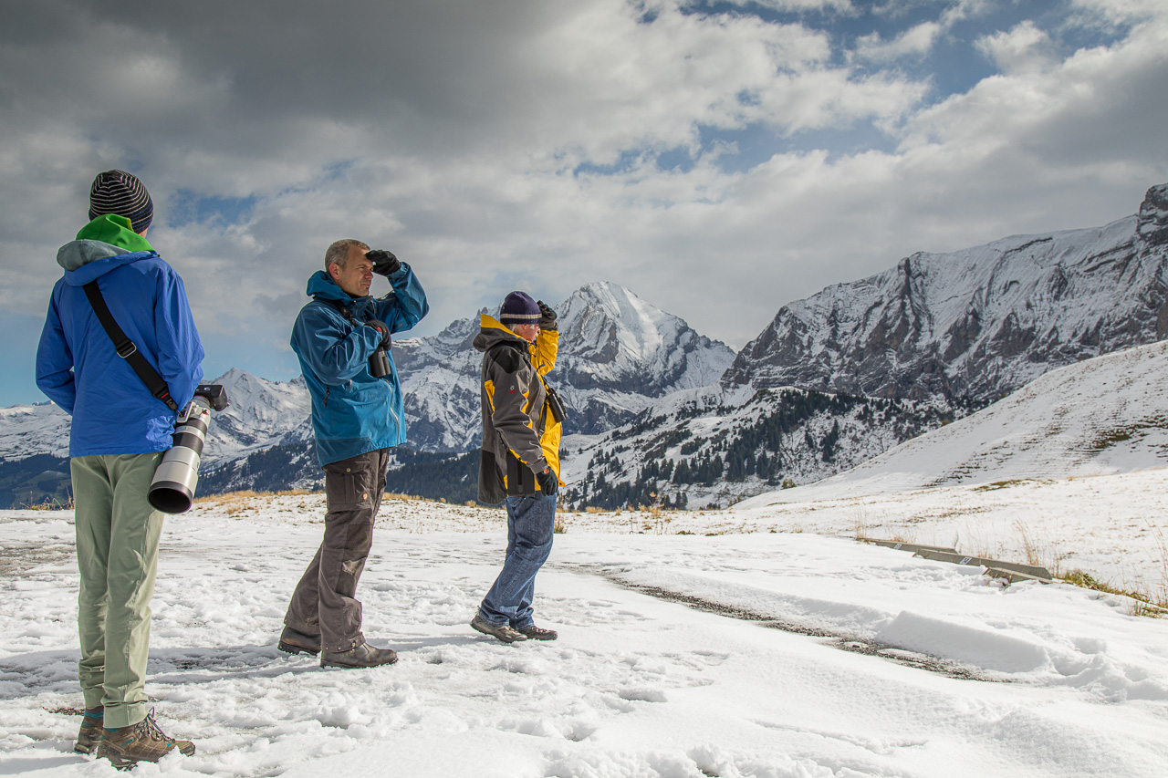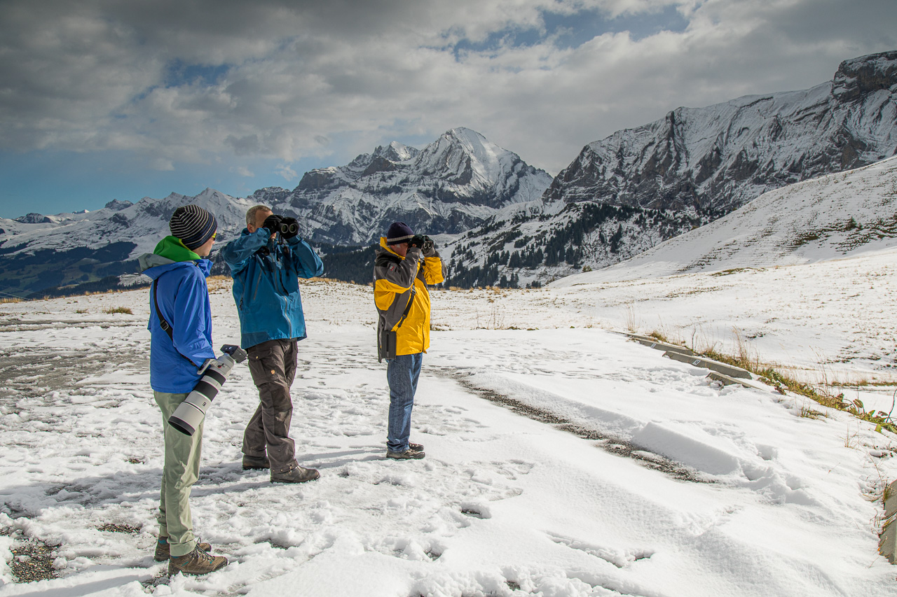 Jeweils am ersten Oktoberwochenende findet der EuroBirdwatch statt. Spezialisten zählen an zahlreichen neuralgischen Punkten die Zugvögel. Dabei ist jedermann herzlich eingeladen, die Standorte zu besuchen und die Ornithologen mit Fragen zu löchern. Wir verfolgten den Vogelzug am Hahnenmoospass.