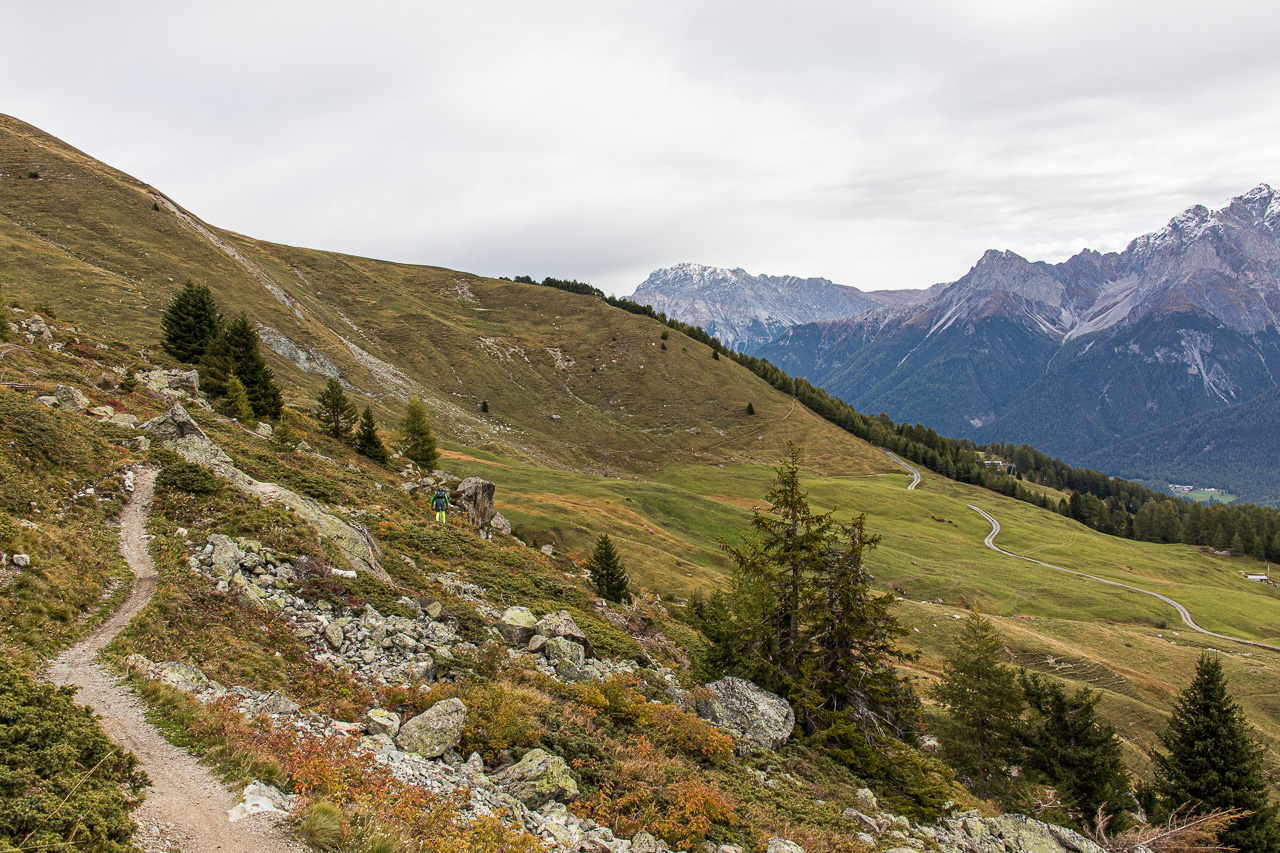 | Strecke: | Motta Naluns – Alp Clünas – Muot da l’Hom – Alp Laret – Prui – Prasüras – Chandschè – Ftan – Scuol |