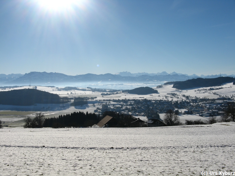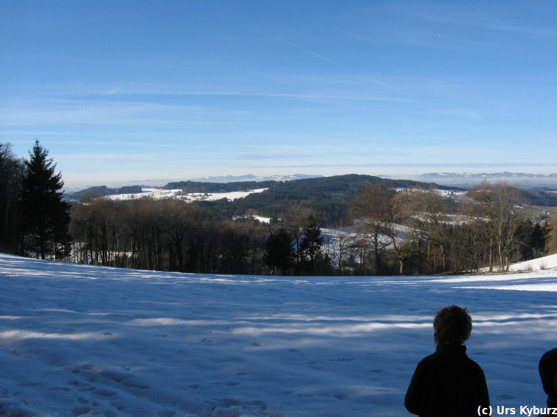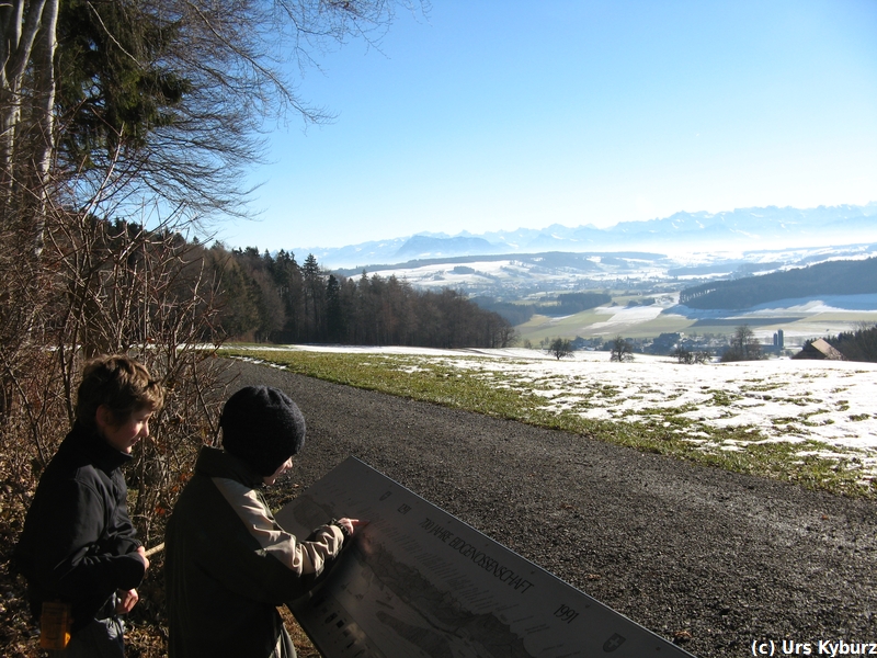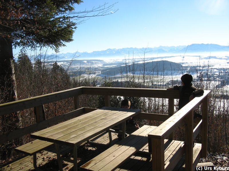 Die Kinder mussten auch heute bewegt werden, ich wählte deshalb den Stierenberg, den höchsten Gipfel im Kanton Aargau, aus. Höchster Gipfel ist relativ, bescheidene 872 Meter misst er. Aber man geniesst eine wunderbare Aussicht vom Säntis bis zum Chasseral, allerdings nicht vom Gipfel, denn dieser ist vollkommen von Wald bedeckt.