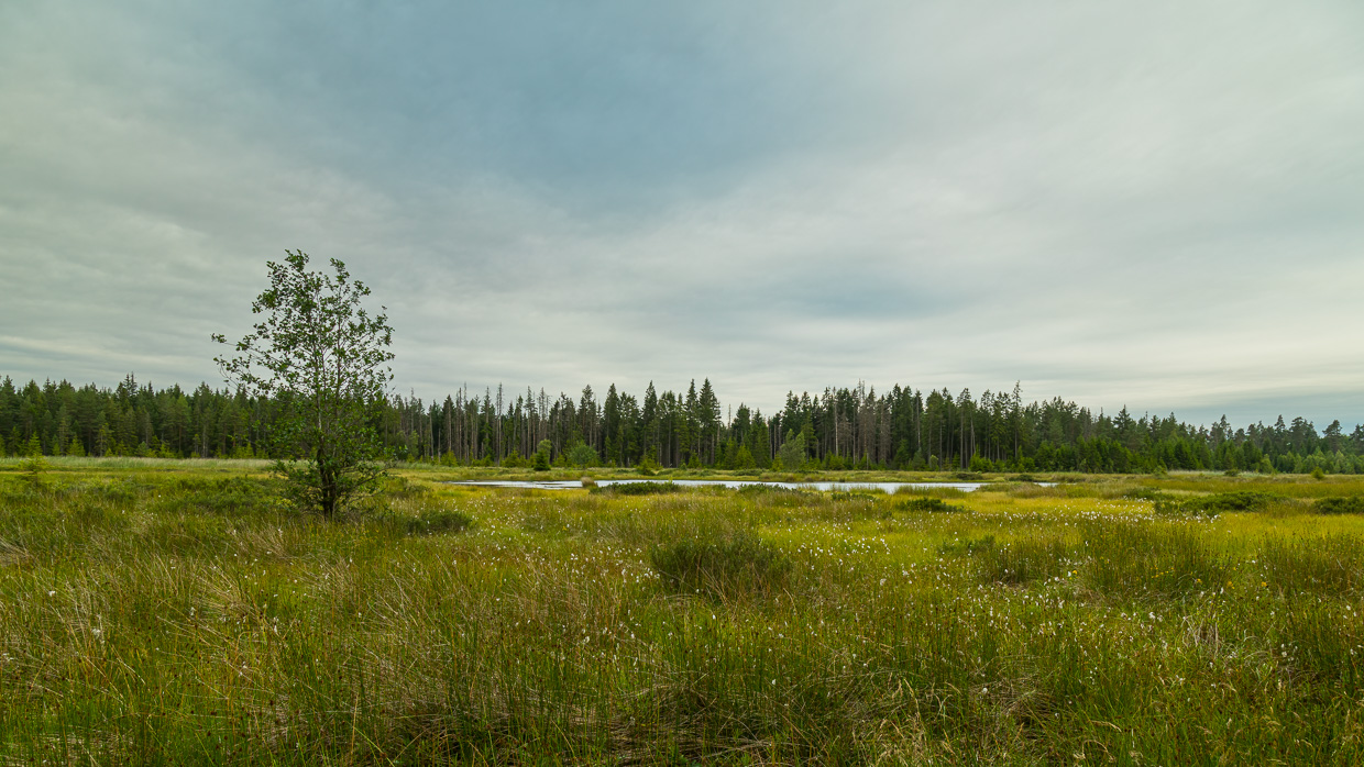 Wir kommen zum Fågelsjön, einem Moorsee. Sieht schön aus, aber viel los ist nicht, trotz seines Namens. Ein paar Krickenten schwimmen vor uns davon, ein Fitis singt in den Bäumen.