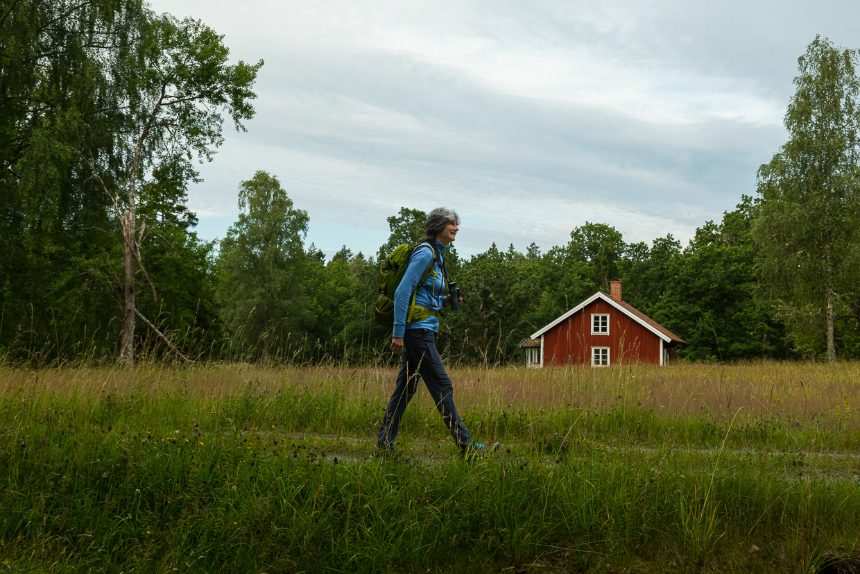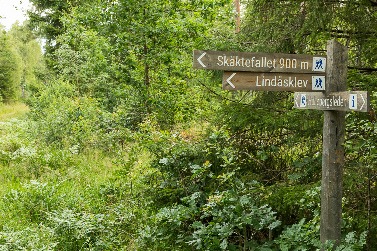 Zwei Tage später bewandern wir nun noch den Halleberg. Auch dort kann man auf den Berg hinauf fahren. Das erste Ziel ist der Skäktefallet, ein Wasserfall. Dabei kommen wir an einem Gehöft vorbei, mitten im Wald auf einer grossen Lichtung.