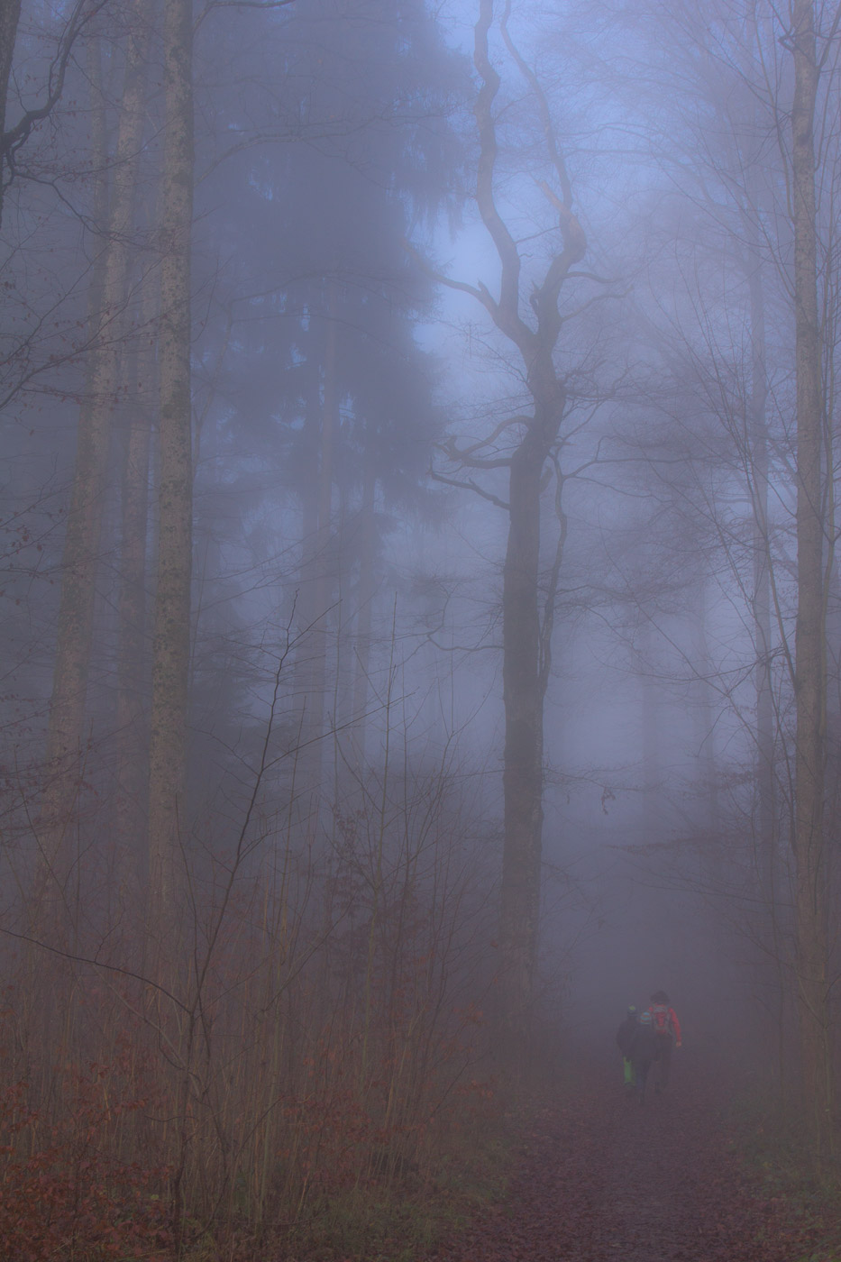 Wir starten unsere Wanderung vor der Haustüre im Sonnenschein. Im Wald dann die ersten Nebelschwaden. Na, die werden schon vergehen. Je mehr wir uns aber dem Bahnhof von Beinwil am See nähern, desto dichter wird die Suppe. Halleluja. Ich rede mir ein, dass sich der Nebel schon noch auflöst.