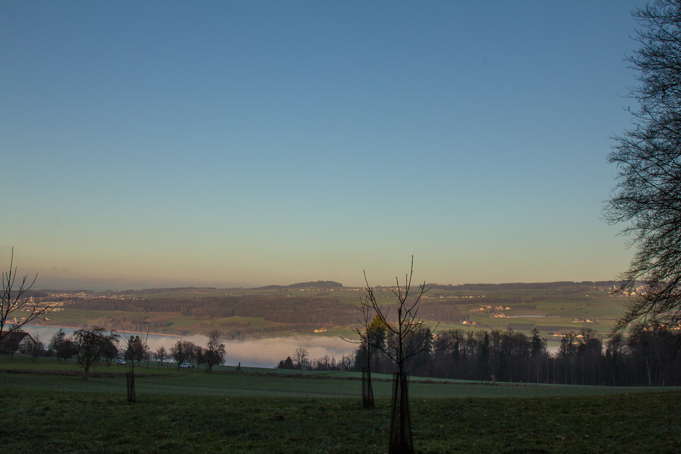 Dort scheint übrigens inzwischen die Sonne, der Nebel scheint sich an die Kantonsgrenze zu halten. So geniessen wir auf dem Heimweg noch die letzten Sonnenstrahlen an diesem milden Spätherbsttag. Oder ist’s nun Frühwinter?