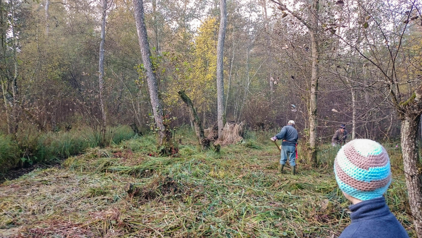 Für einmal waren wir nicht (nur) in der Natur unterwegs, sondern auch für die Natur: Wir meldeten uns beim örtlichen Naturschutzverein zur Weiherpflege an. Weit radeln mussten wir nicht, war der Wald doch gleich oberhalb unserer Behausung (es gibt ja immer wieder Fotos von diesem Wald und vom Weiher, jene, die mir auf den Social Medias folgen, kennen sie).